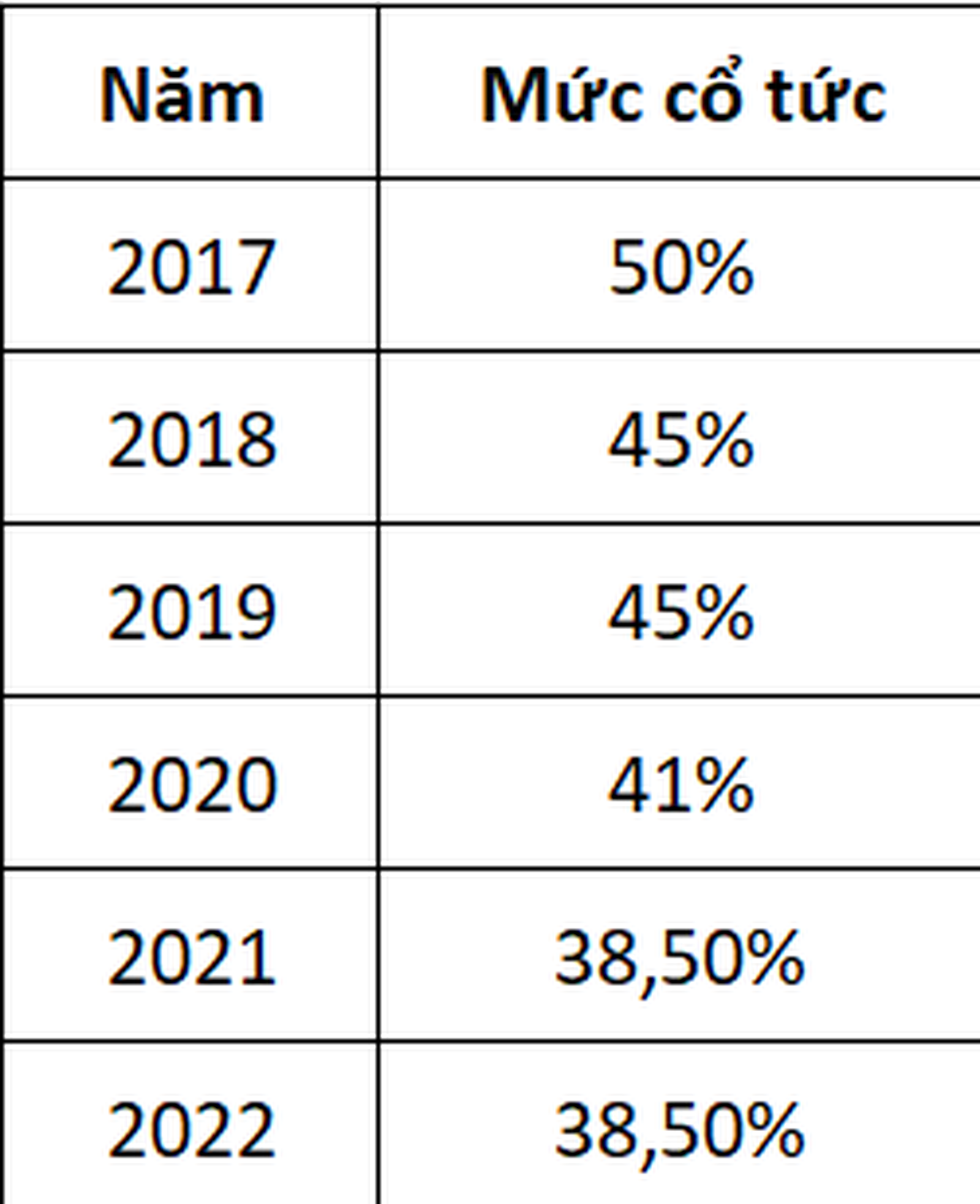 Trước đó, tại cuộc họp ĐHĐCĐ thường niên năm nay, cổ đông đã thông qua phương án cổ tức năm 2021, tỷ lệ 38,5% bằng tiền mặt (3.850 đồng/cp), tương ứng tổng giá trị 8.046 tỷ đồng. Vinamilk đã tạm ứng 29% cổ tức cho cổ đông vào ngày 30/9/2021 và 25/2. Bên cạnh đó, mức cổ tức cho năm 2022 cũng là 38,5% bằng tiền.