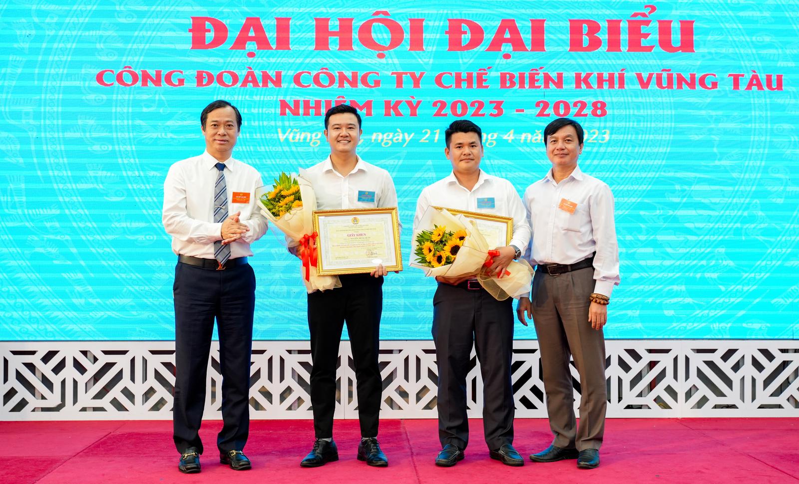 Tại Đại hội, lãnh đạo Công đoàn PV GAS đã trao khen thưởng cho tập thể Công đoàn Công ty Chế biến Khí Vũng Tàu và 2 cá nhân là đồng chí Lê Văn Sơn – UV BCH Công đoàn nhiệm kỳ 2018-2023 và đồng chí Nguyễn Trung Quân – Công đoàn viên. Đây là những điển hình được Công đoàn PV GAS ghi nhận với những thành tích xuất sắc trong phong trào thi đua lao động giỏi và xây dựng tổ chức Công đoàn vững mạnh nhiệm kỳ 2018 – 2023. Ban chấp hành Công đoàn KVT đã tặng kỷ niệm chương cho 3 tập thể và 17 cá nhân thuộc Công đoàn KVT đã có thành tích xuất sắc trong hoạt động Công đoàn nhiệm kỳ 2018– 2023.