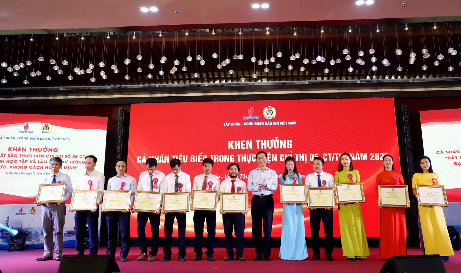 CĐ DKVN đã biểu dương, khen thưởng 33 cá nhân xuất sắc trong thực hiện Chỉ thị 05 của Bộ Chính trị về “Đẩy mạnh học tập và làm theo tư tưởng, đạo đức, phong cách Hồ Chí Minh” năm 2022. PV GAS có 3 điển hình được tôn vinh: anh Trần Đức Tài (KCM), anh Nguyễn Tấn Kiên (CQĐH), chị Vũ Quỳnh Ngọc (DAK). Trong số 60 nhân vật được CĐDKVN tôn vinh “NLĐ Dầu khí tiêu biểu năm 2022”, PV GAS đóng góp các điển hình xuất sắc: anh Vũ Thanh Liêm (CQĐH), anh Huỳnh Quý Phong (DAK), anh Sơn Quốc Cầu (KCM), anh Nguyễn Ngọc Hiếu (KVT), anh Nguyễn Trần Sáng (KĐN). Cũng có thêm 15 NLĐ tiêu biểu được đề cử từ các công đoàn trực thuộc Công đoàn PV GAS đã có mặt tại buổi Lễ, đại diện cho lực lượng lao động tiêu biểu của ngành công nghiệp khí.