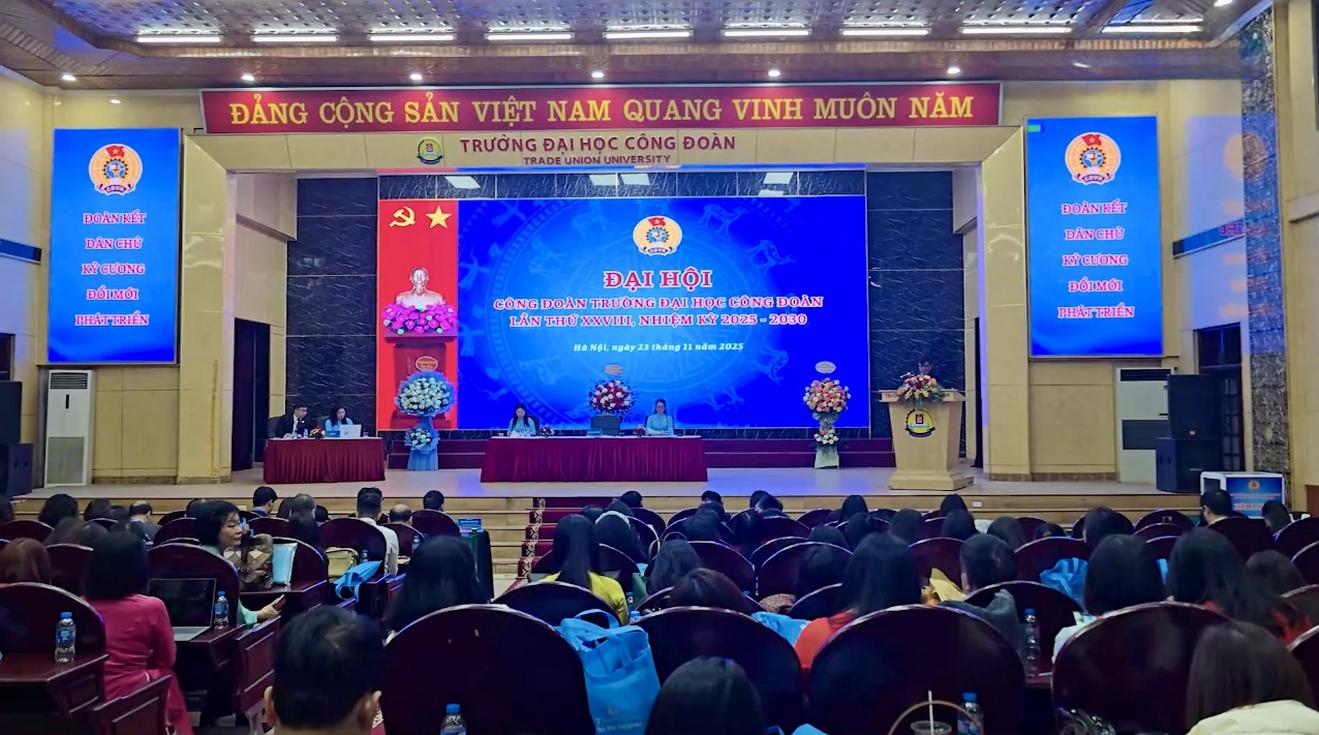 (Thanh tra) - Ngày 23/11, Trường Đại học Công đoàn tổ chức Đại hội Công đoàn Trường lần thứ XXVIII, nhiệm kỳ 2025-2030. Đại hội diễn ra trong không khí thi đua sôi nổi của đội ngũ cán bộ, viên chức, người lao động cả nước hướng tới Đại hội Công đoàn Việt Nam lần thứ XIV.