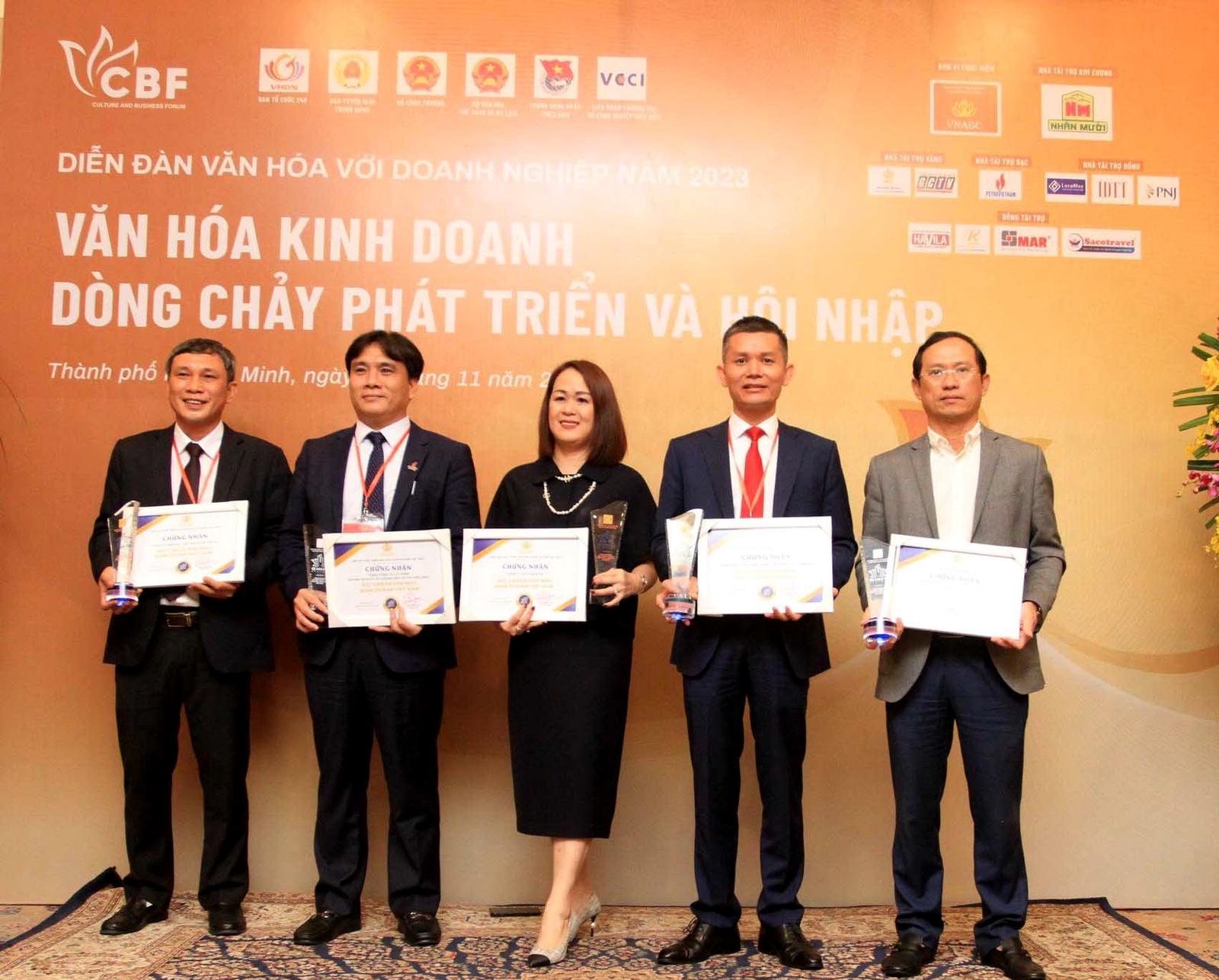 Trong khuôn khổ diễn đàn cũng đã diễn ra lễ tôn vinh và trao chứng nhận “Doanh nghiệp đạt chuẩn văn hóa kinh doanh” năm 2023 cho 20 doanh nghiệp đáp ứng các tiêu chuẩn của Bộ tiêu chí Văn hóa kinh doanh Việt Nam do Hội đồng Quốc gia xét duyệt. Trong đó, có 5 doanh nghiệp thuộc Tập đoàn Dầu khí Việt Nam (chiếm tỷ lệ 25% tổng số doanh nghiệp được công nhận), bao gồm: Tổng công ty CP Khoan và Dịch vụ Khoan Dầu khí (PV Drilling); Công ty CP PVI; Ngân hàng TMCP Đại chúng Việt Nam (PVcomBank); Công ty TNHH MTV Điện lực Dầu khí Nhơn Trạch (PV Power NT) - đơn vị thành viên của Tổng công ty Điện lực Dầu khí Việt Nam (PV Power); Công ty Chế biến Khí Vũng Tàu - đơn vị thành viên của PV GAS.