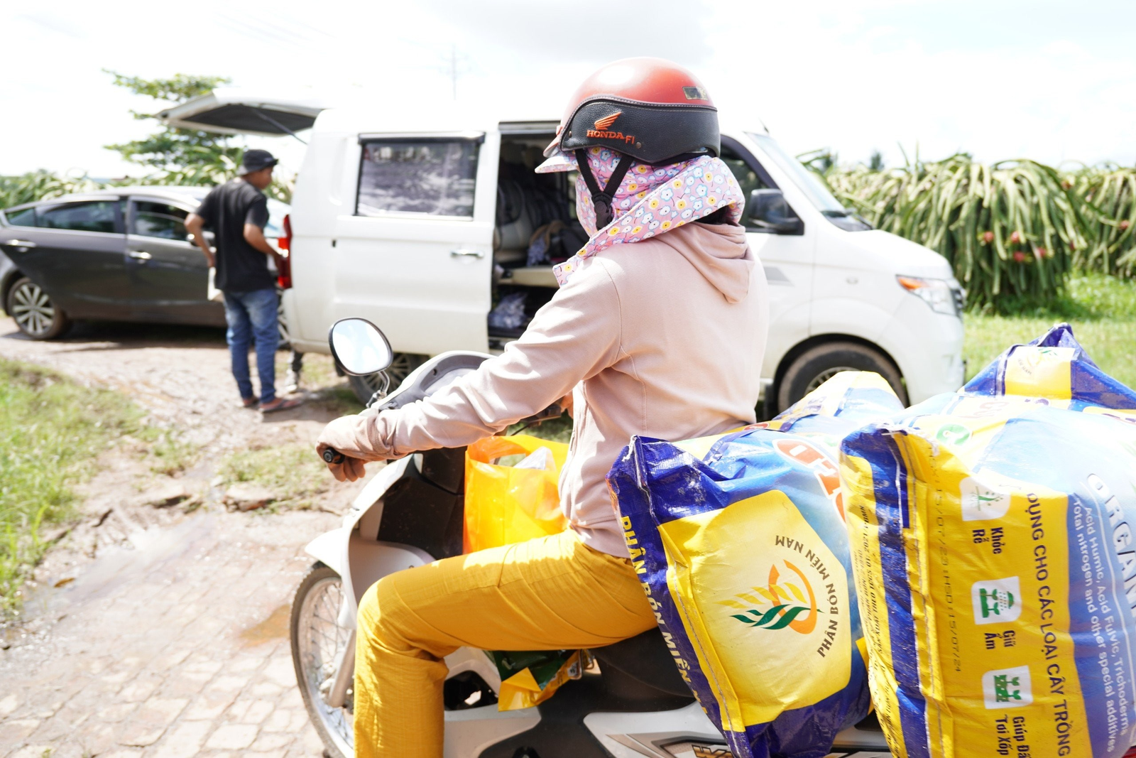 Người dân mua Phân bón hữu cơ SFJC Bio-Gold G.A.P sử dụng trên cây thanh long ở Bình Thuận.