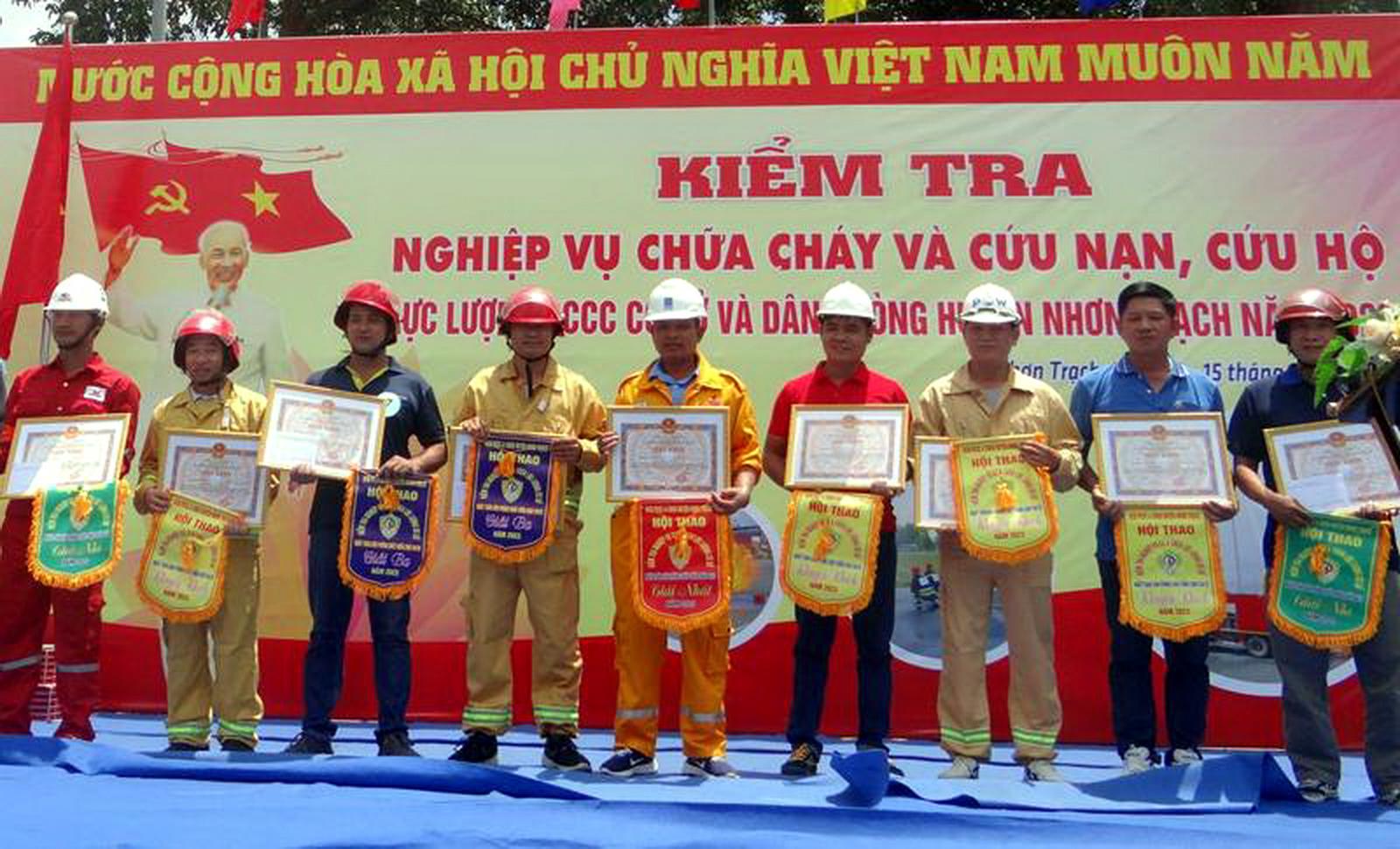 Hội thao có phần thi “Đội hình tổng hợp 300m chữa cháy, cứu người, cứu tài sản” dành cho lực lượng dân phòng, khối xã và cơ quan hành chính sự nghiệp. Kết quả ở phần thi này, giải Nhất thuộc về Trung tâm Y tế huyện Nhơn Trạch. Phần thi “Đội hình 2 lăng B phun tiêu điểm” được dành cho các công ty, doanh nghiệp. Kết quả, đội tuyển KĐN đã xuất sắc đạt giải Nhất. Bên cạnh đó, BTC cũng trao 2 giải Nhì, 3 giải Ba và 4 giải Khuyến khích ở cả hai nội dung trên.
