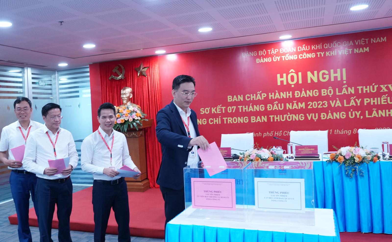 Hội nghị đã tiến hành lấy phiếu tín nhiệm với các đồng chí trong Ban Thường vụ Đảng ủy và Lãnh đạo PV GAS, thực hiện chủ trương của Đảng về xây dựng, chỉnh đốn Đảng và hệ thống chính trị