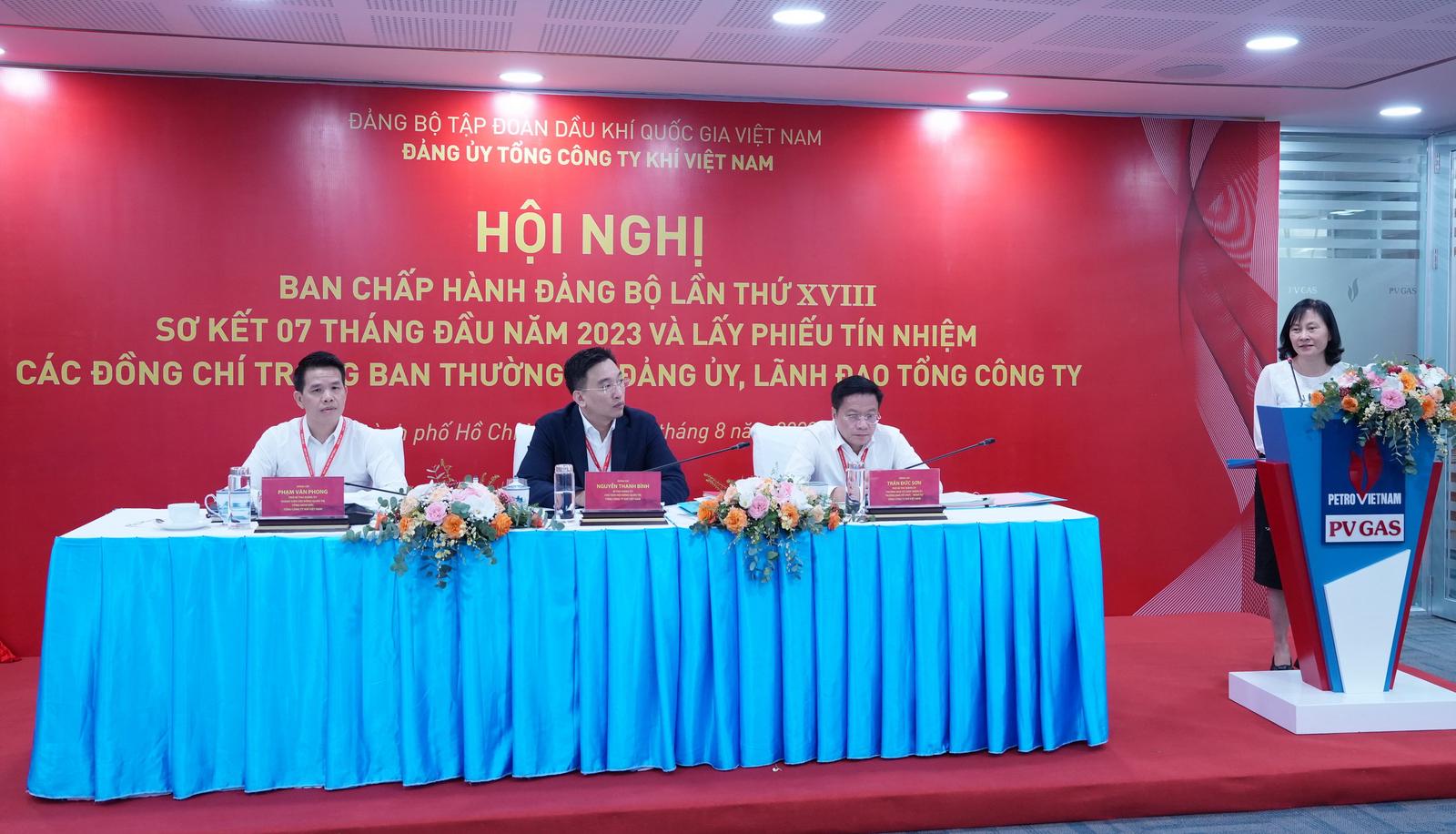 Phát biểu chỉ đạo Hội nghị, đồng chí Bùi Thị Nguyệt - Ủy viên Ban Thường vụ Đảng ủy, Chủ nhiệm Ủy ban Kiểm tra Đảng ủy, Trưởng Ban Kiểm soát nội bộ Tập đoàn đã khẳng định Hội nghị định kỳ của BCH Đảng bộ PV GAS và quá trình lấy ý kiến tín nhiệm đội ngũ cán bộ cấp cao của PV GAS được tổ chức nghiêm túc, đúng quy định, tiếp tục khẳng định vai trò nêu gương của Đảng bộ PV GAS trong toàn Tập đoàn. Đồng chí cũng nhấn mạnh một số nhiệm vụ quan trọng, cần tập trung thực hiện trong những tháng cuối năm về các chương trình kiểm tra giám sát, cập nhật các văn bản quy định mới, nỗ lực điều hành hoàn thành các nhiệm vụ chính trị và sản xuất kinh doanh của Đảng bộ PV GAS, góp phần vào việc hoàn thành kế hoạch của Đảng bộ Petrovietnam.