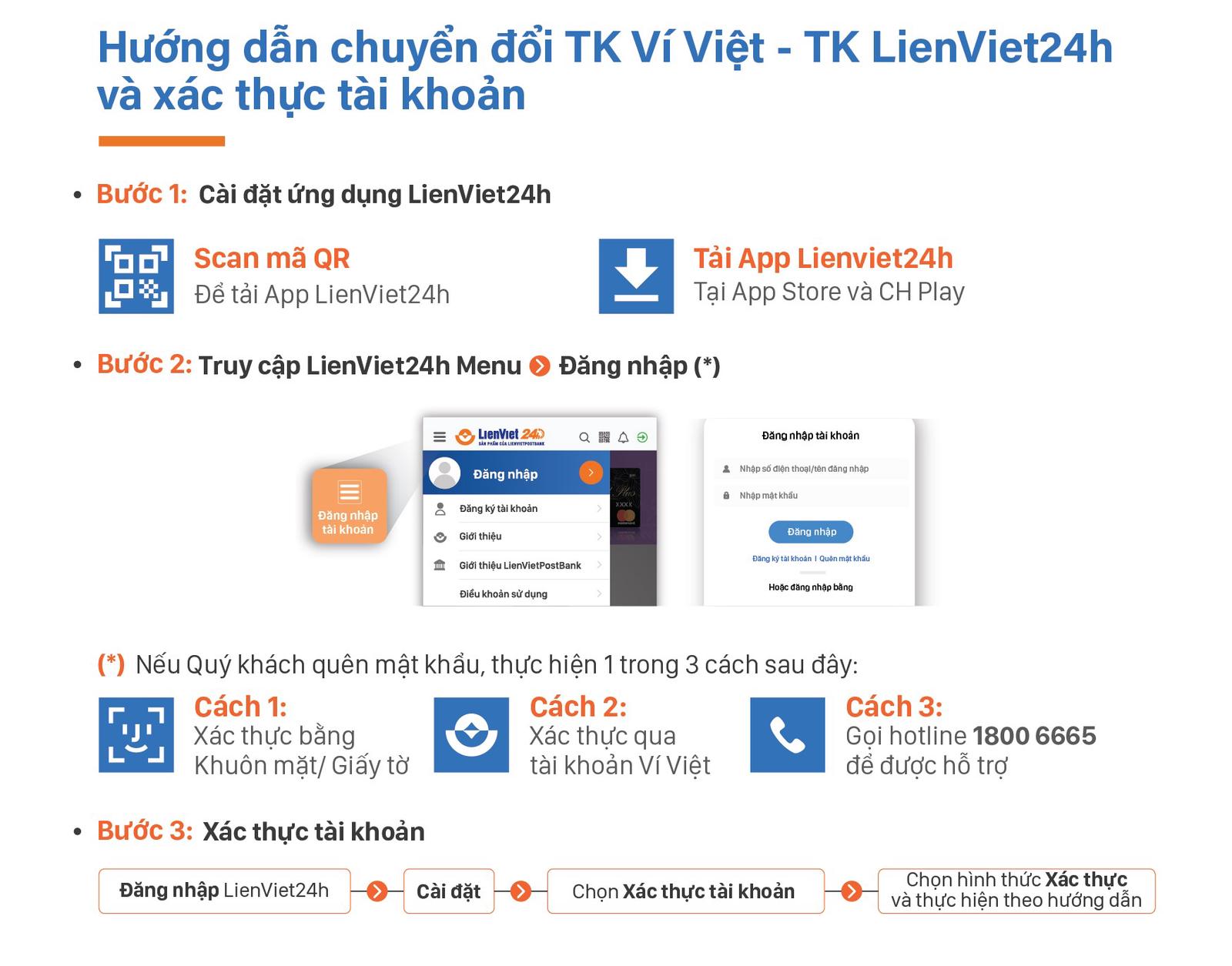 Nếu khách hàng chưa có tài khoản LienViet24h tại LienVietPostBank, thực hiện đăng ký EKYC theo hướng dẫn tại đây hoặc định danh tại quầy giao dịch.