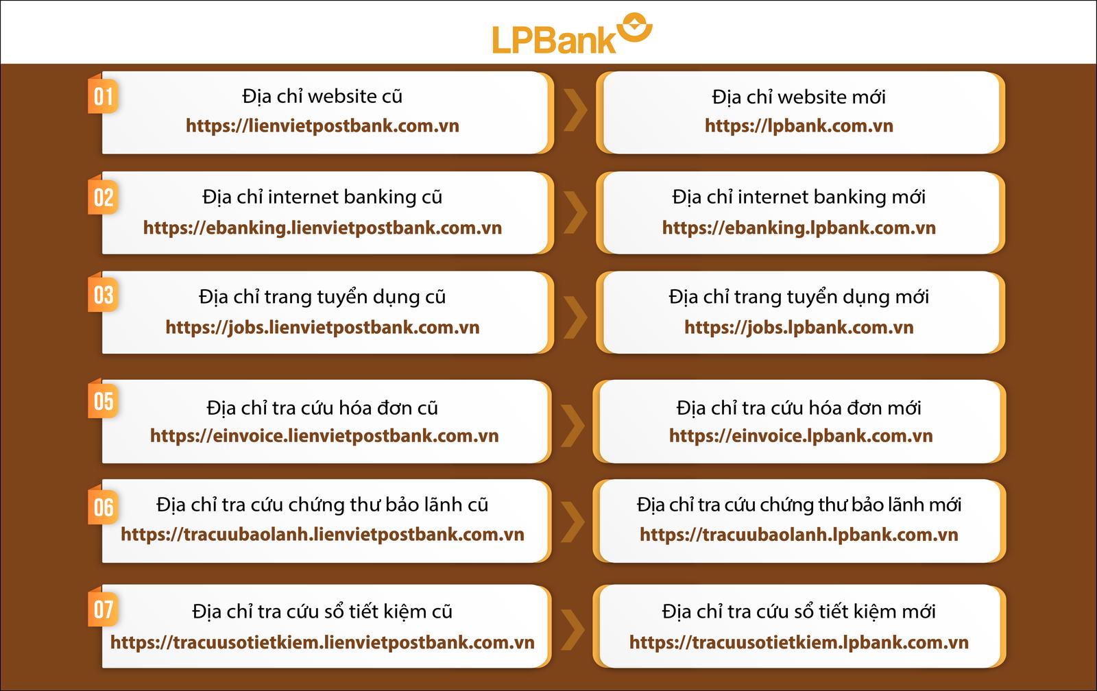 Đáng chú ý, ngân hàng cũng thực hiện đổi tên miền trên các website dành cho khách hàng. Theo đó, tên miền cũ “…lienvietpostbank.com.vn” hiện tại đã được chuyển thành “…lpbank.com.vn”.