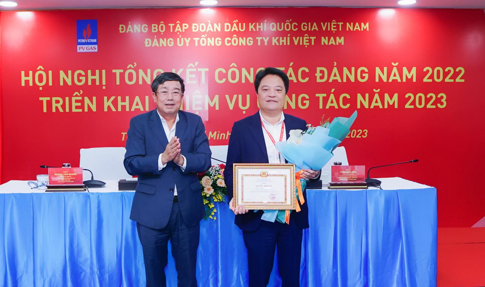 Tại Hội nghị, Đảng ủy Tổng công ty Khí Việt Nam đã tổ chức trao tặng khen thưởng các tập thể, cá nhân xuất sắc của Đảng bộ Tổng công ty theo quyết định khen thưởng của Đảng ủy Tập đoàn. Đồng chí Hoàng Văn Quang, Phó Bí thư Đảng ủy, Thành viên Hội đồng quản trị, Tổng giám đốc PV GAS đã thay mặt Đảng bộ Tổng công ty nhận Giấy khen của Đảng ủy Tập đoàn đối với Đảng bộ PV GAS đạt tiêu chuẩn "hoàn thành xuất sắc nhiệm vụ" tiêu biểu năm 2022. 04 tổ chức đảng thuộc Đảng bộ PV GAS cũng nhận khen thưởng vì đạt tiêu chuẩn "hoàn thành xuất sắc nhiệm vụ" tiêu biểu năm 2022 đó là: Đảng bộ Cơ quan điều hành Tổng công ty, Đảng bộ Công ty Chế biến Khí Vũng Tàu, Đảng bộ Công ty Vận chuyển Khí Đông Nam bộ và Đảng bộ Công ty Cổ phần Phân phối khí thấp áp Dầu khí Việt Nam.