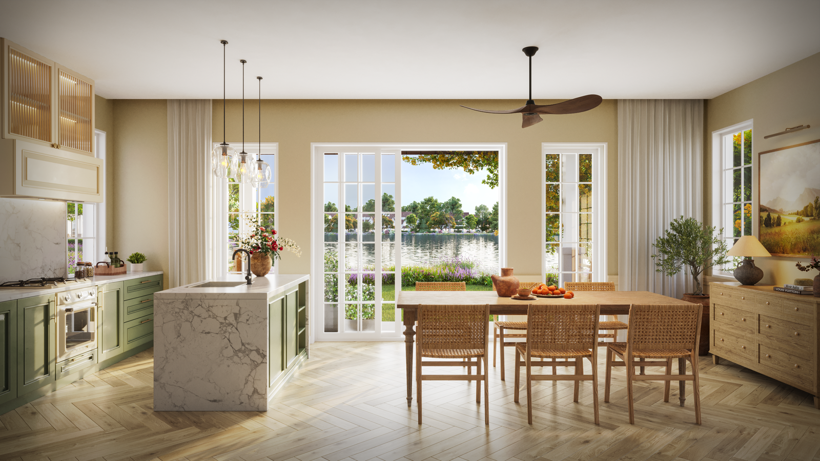 Sau mỗi khung cửa là không gian cây xanh, mặt nước ngập tràn