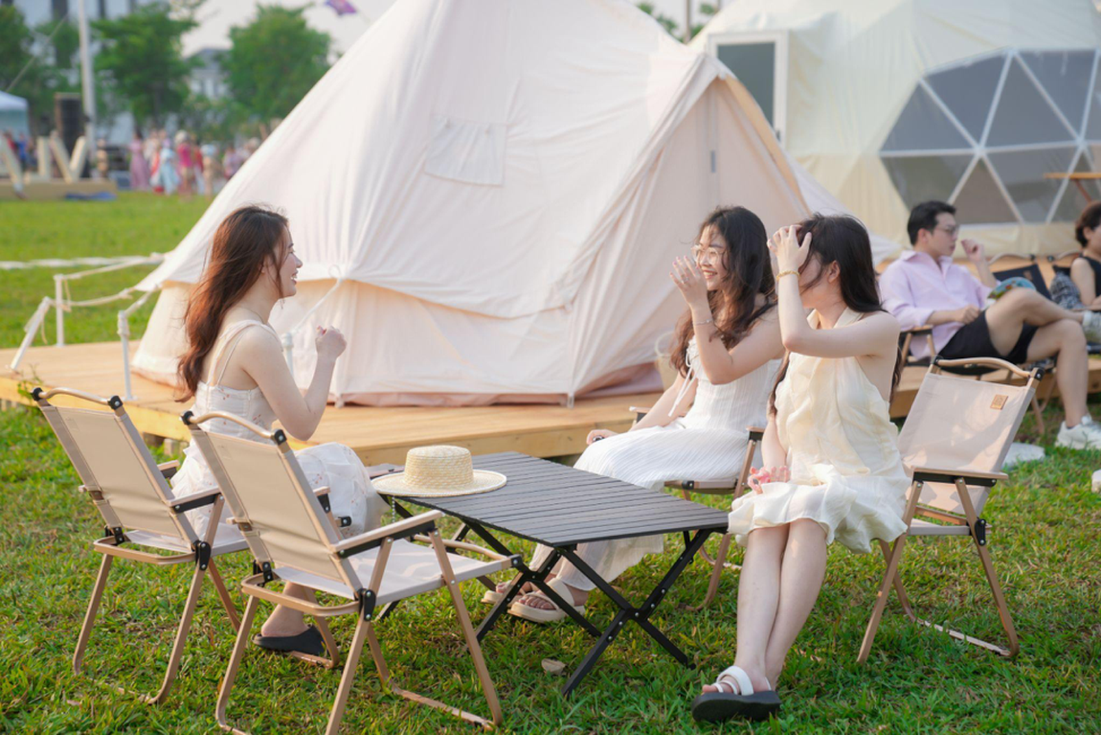 Ngả lưng tại lều trại được dựng sẵn cho cả nhóm bạn và gia đình với “view” biển đắt giá, chỉ vài bước chân là đến gian cà phê được thiết kế hình container độc đáo với menu đồ uống nhiệt đới thơm mát đánh tan cái nóng mùa hè, chiều đến thì mở tiệc BBQ bùng nổ vị giác, thả diều dưới ánh hoàng hôn rồi kết thúc một ngày tại rạp chiếu phim ngoài trời đầy sao vô cùng lãng mạn...