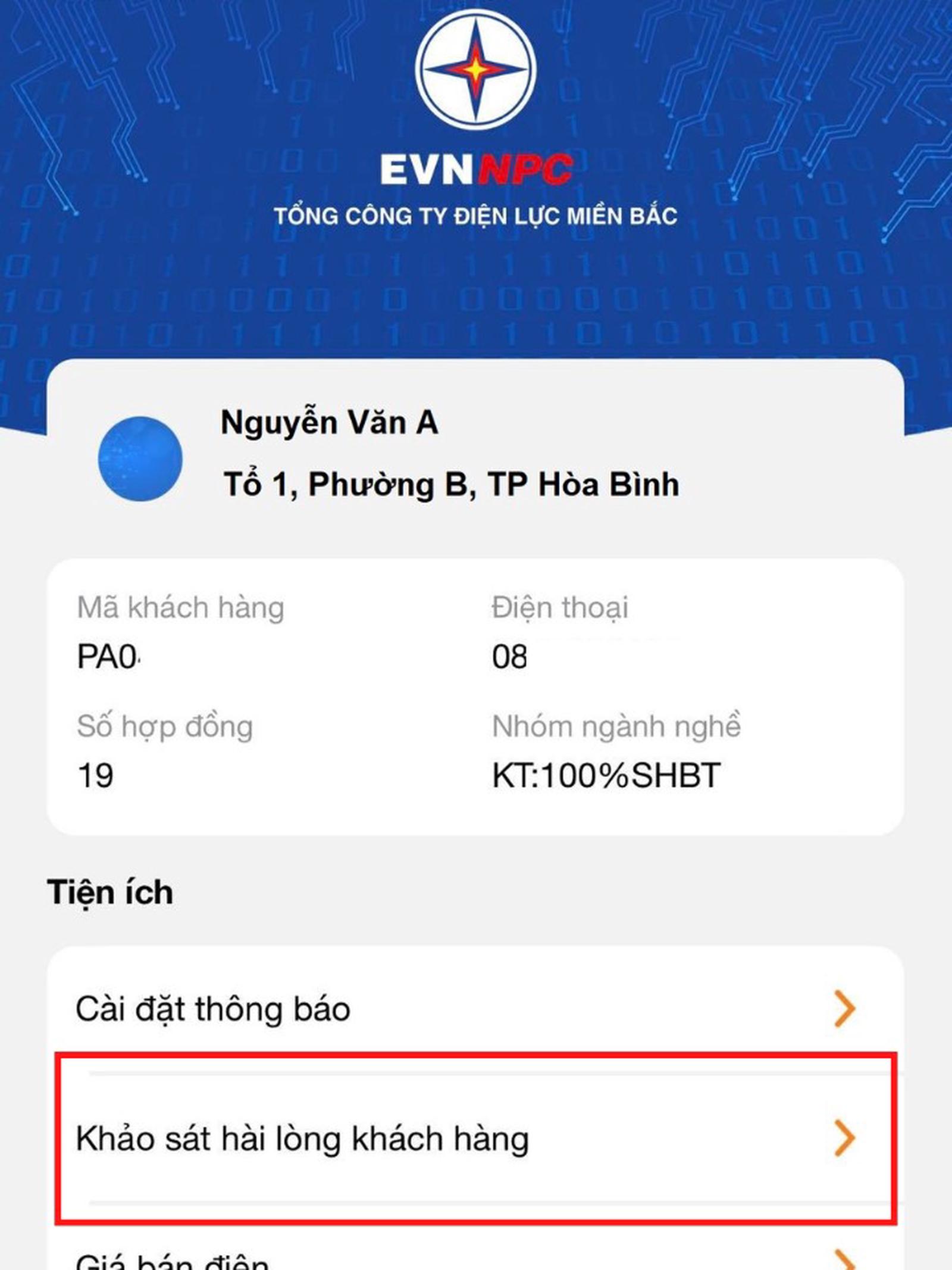 Trên cơ sở đó, TTCSKH triển khai thực hiện khảo sát hài lòng khách hàng trên nền tảng ứng dụng Mobile (APP CSKH) với mong muốn lắng nghe nhiều hơn những ý kiến đóng góp của khách hàng. Ý kiến chia sẻ của khách sẽ được bảo mật tuyệt đối và được sử dụng làm cơ sở quan trọng cho những thay đổi trong quá trình cung cấp dịch vụ điện.