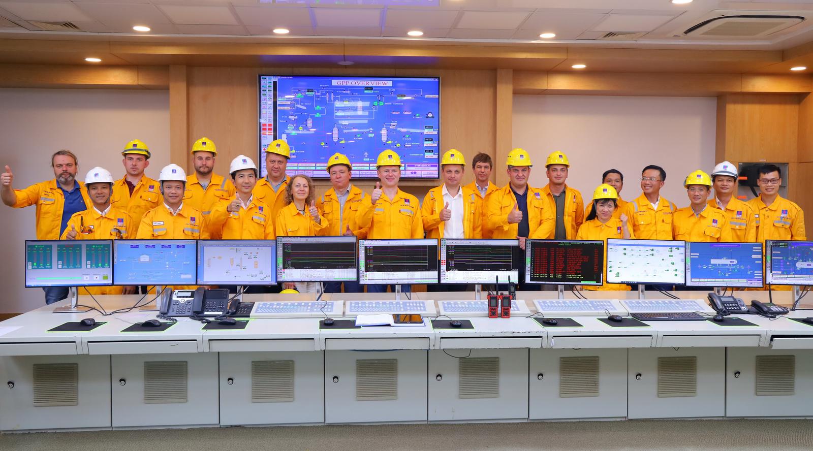 Đoàn cán bộ, chuyên gia Gazprom cùng các kỹ sư, công nhân vận hành KVT tại phòng điều khiển của Nhà máy