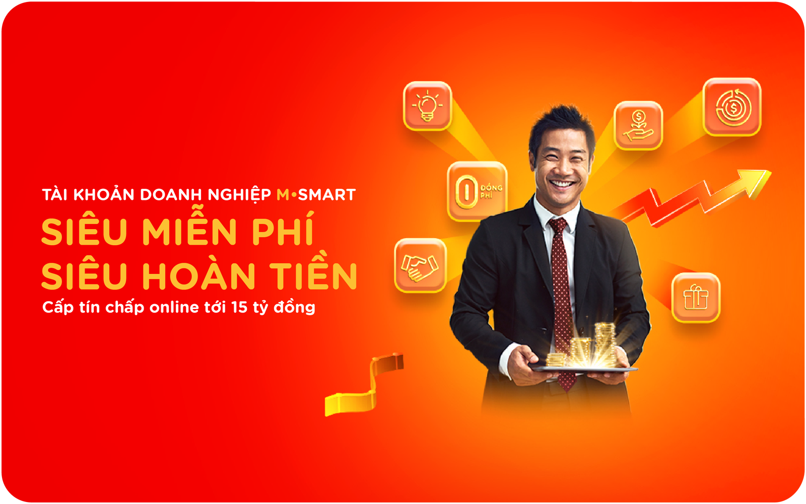 Theo đó, doanh nghiệp mở mới tài khoản M-smart sẽ nhận ngay mức hoàn tiền tới 2 triệu đồng/khách hàng/tháng và kéo dài trong 6 tháng liên tiếp khi phát sinh giao dịch ghi nợ trên Internet Banking. Đây là ưu đãi mới mẻ trên thị trường hiện nay khi hoàn tiền từ giao dịch tài khoản doanh nghiệp online. Trước đây, hình thức hoàn tiền phổ biến chỉ được biết đến trong các giao dịch thẻ.