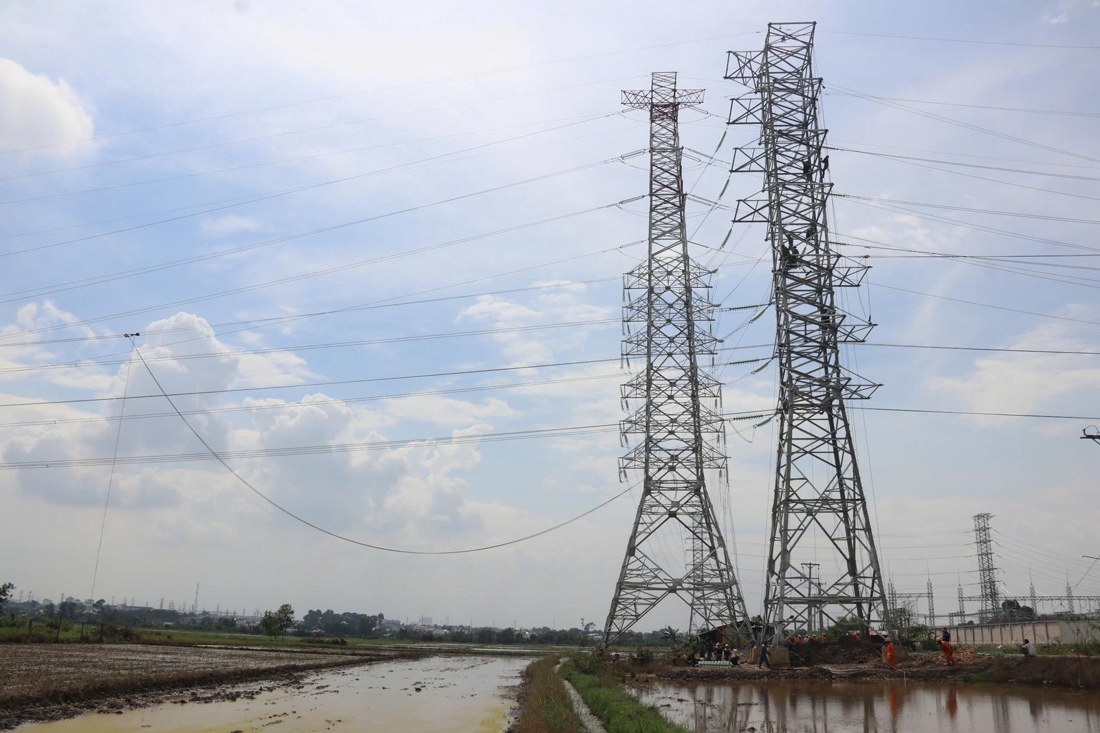 Thi công nước rút chuẩn bị hoàn thành, đóng điện công trình Các lộ ra 110kV Trạm 220kV Bến Lức, tỉnh Long An. Ảnh: EVNSPC