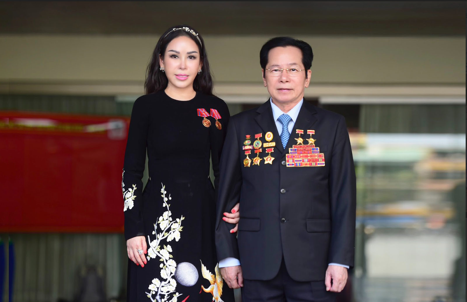 Thân phụ bà Lê Nữ Thùy Dương - Anh hùng Lao động, Doanh nhân Cựu chiến binh, ông Lê Văn Kiểm cùng đến tham dự chương trình, chúc mừng con gái đón nhận danh hiệu Nhà nước cao quý. Ảnh ĐH