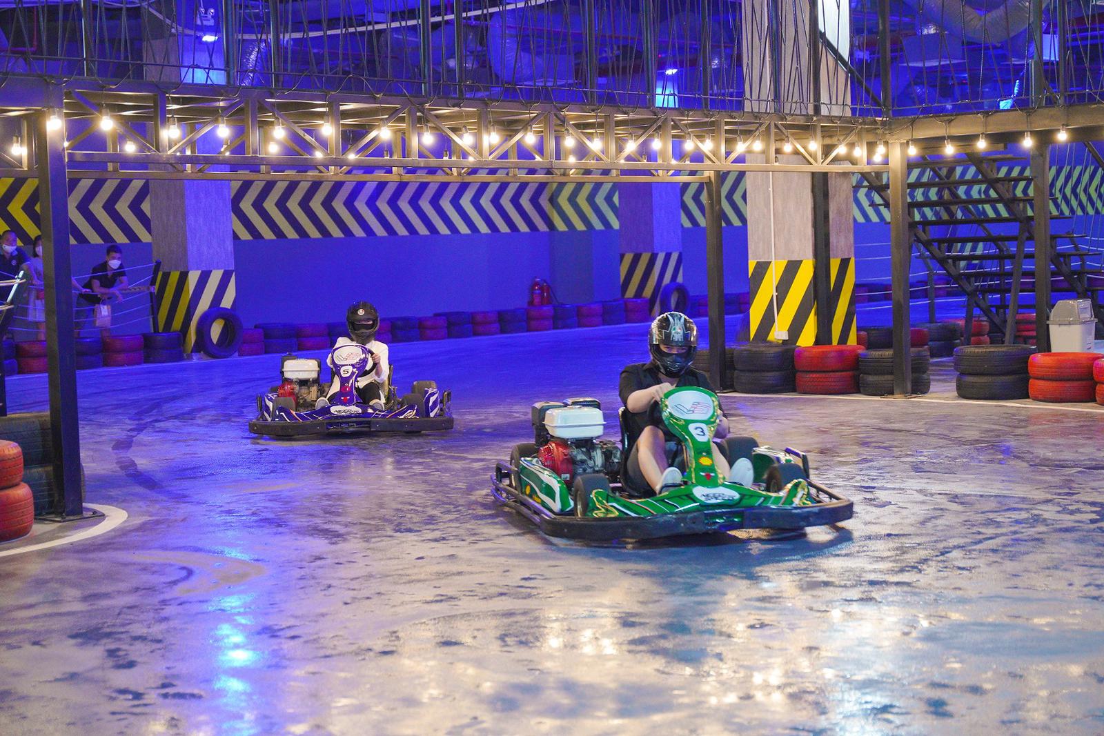 Những ai mê tốc độ chắc chắn phải đến VS Racing, trải nghiệm những khúc cua hiểm hóc của đường đua với loạt xe đua thế hệ mới có vận tốc lên đến 40km/h, trong những bộ cánh bảo hộ an toàn và siêu ngầu.