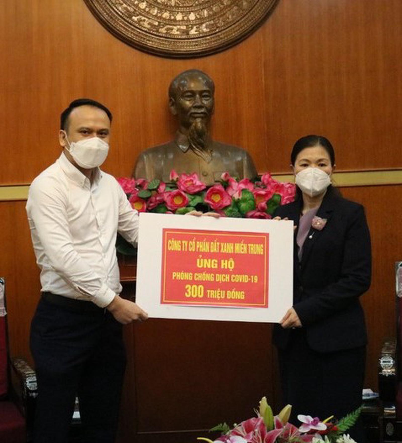 Đại diện Đất Xanh Miền Trung trao 300 triệu đồng cho Quỹ phòng chống dịch COVID-19 vào tháng 4/2020. Ảnh: DXG