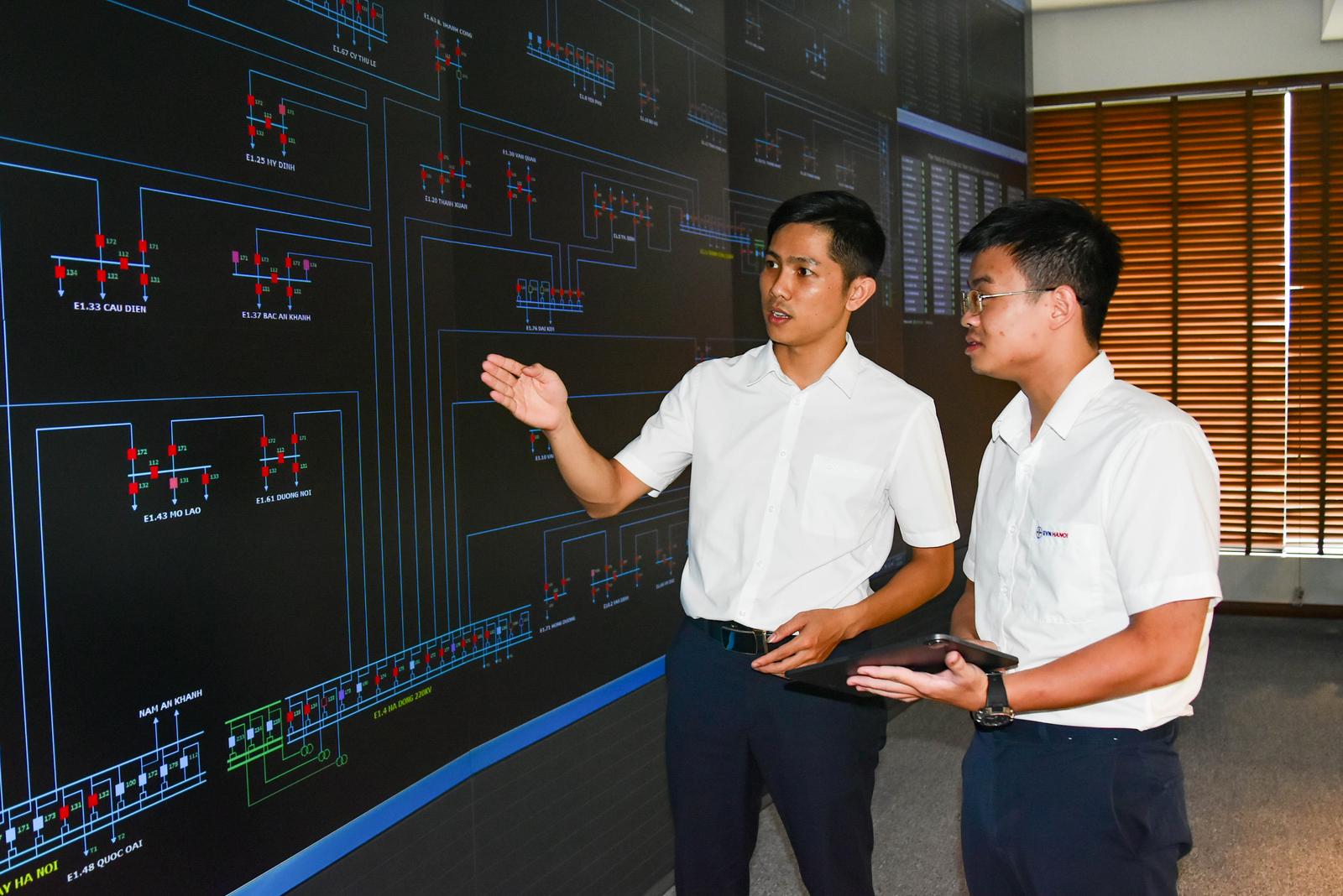Các điều độ viên thuộc EVNHANOI kiểm tra tình trạng vận hành trên hệ thống lưới điện Thủ đô