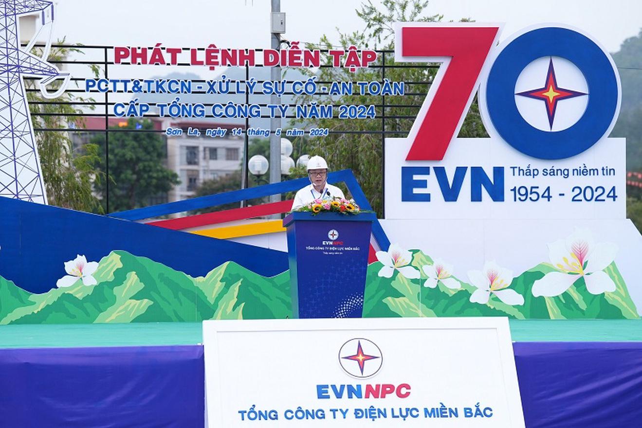 Đối với công tác diễn tập năm nay, Tổng công ty lựa chọn địa bàn thành phố Sơn La với đặc điểm là một tỉnh miền núi, bị ảnh hưởng của nhiều hình thái thiên tai: Giông lốc, mưa, lũ, sạt lở, nắng nóng… để tổ chức diễn tập. Đồng thời huy động nhân lực, phương tiện mới, hiện đại của các đơn vị lân cận tham gia diễn tập và toàn bộ các cán bộ lãnh đạo khối Kỹ thuật - An toàn - Điều độ của các đơn vị thành viên tham gia quan sát. Để buổi diễn tập được thành công tốt đẹp, Phó Tổng giám đốc EVNNPC yêu cầu các đơn vị, các đồng chí tham gia diễn tập phải tuyệt đối chấp hành kỷ luật lao động, văn hóa doanh nghiệp, văn hóa an toàn, trật tự công cộng, thực hiện đúng, đủ các quy trình vận hành, quy trình xử lý sự cố, quy định an toàn vệ sinh lao động, tình huống diễn tập và sự phân công của Ban Chỉ huy; tham gia với đầy đủ thành phần, giám sát các tình huống diễn tập tại hiện trường, quan sát đầy đủ công tác diễn tập cứu nạn cứu hộ, tham gia tổng kết rút kinh nghiệm sau diễn tập và nhận xét, đánh giá, đóng góp ý kiến theo sự phân công của Ban Chỉ huy; các đơn vị, lực lượng tham gia diễn tập phải đảm bảo tuyệt đối an toàn điện, an toàn giao thông trong quá trình thực hiện.