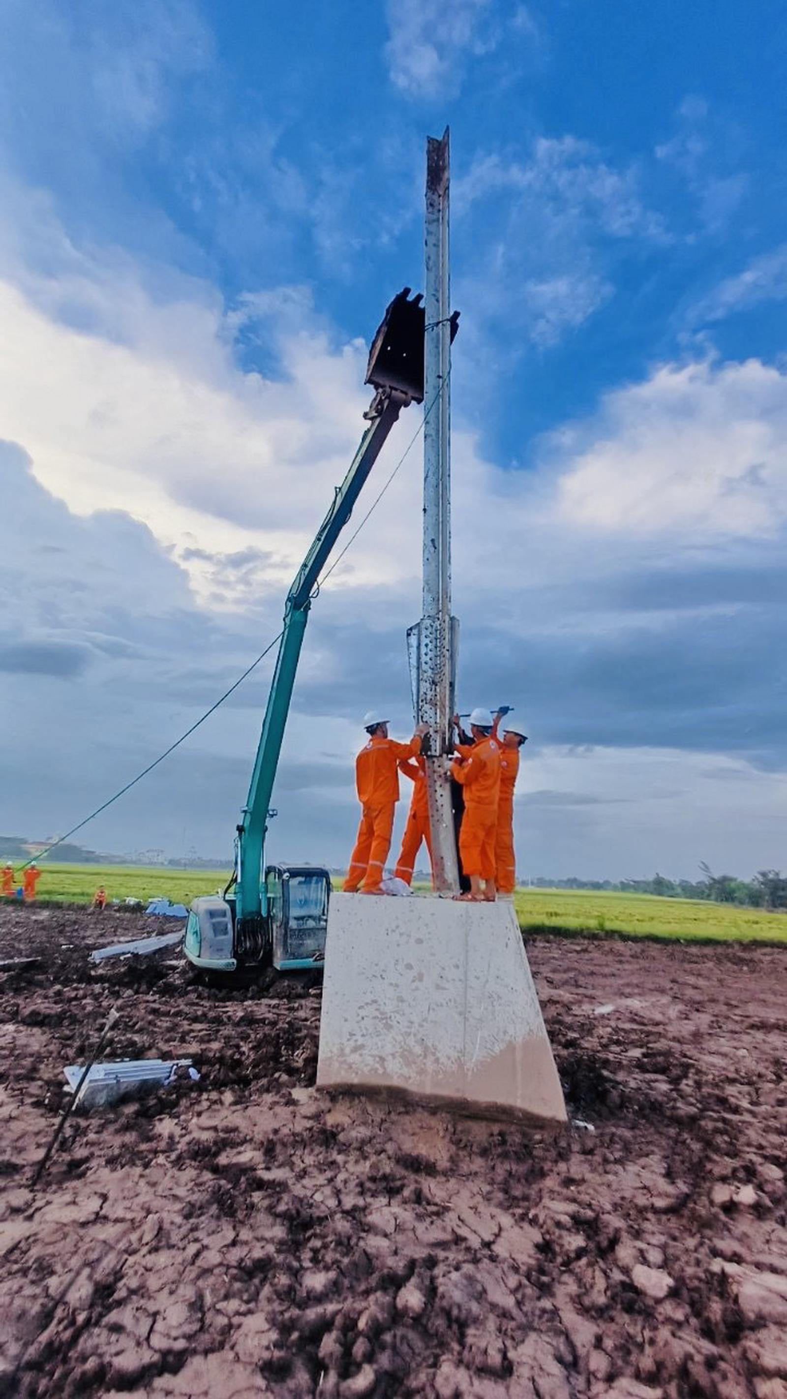 Những hình ảnh đầu tiên của Đội xung kích Công ty Điện lực Bắc Ninh ngày 03/6 tại vị trí cột 117, xã Nam Thắng, huyện Nam Trực, tỉnh Nam Định. Ảnh: Phương Anh