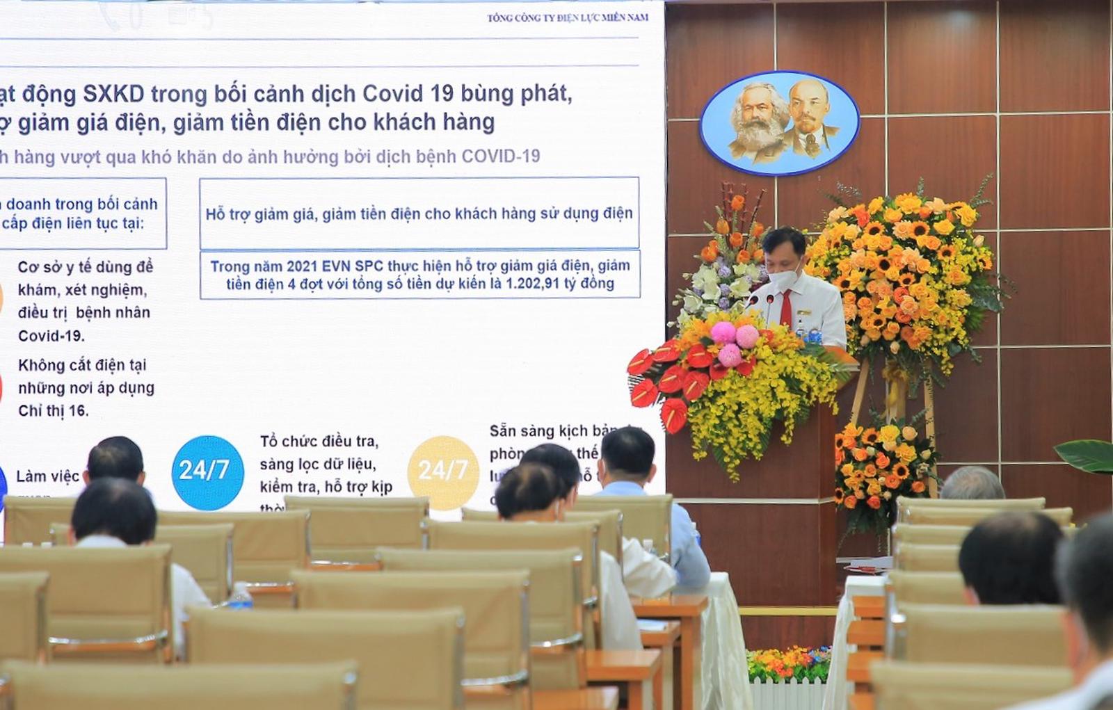 Tại hội nghị tổng kết công tác năm 2021, triển khai nhiệm vụ năm 2022, EVNSPC cho biết, trong suốt quá trình cùng miền Nam chống dịch Covid-19, EVNSPC đã đảm bảo cung cấp điện cho 326 điểm cách ly tập trung; 416 cơ sở y tế, bệnh viện điều trị cho bệnh nhân nhiễm Covid-19 và 1.204 trạm, chốt kiểm soát dịch. Tổng công ty cũng đã giảm giá điện, giảm tiền điện với tổng số tiền 1.203 tỷ đồng chia sẻ khó khăn với khách hàng.