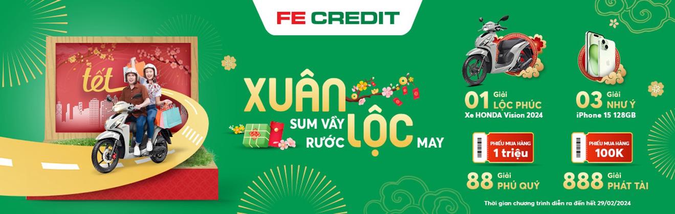 Sản phẩm vay ưu đãi mua xe máy cũng là một trong nhiều chương trình ưu đãi được FE CREDIT đồng loạt triển khai dịp Tết Nguyên Đán Giáp Thìn nhằm giảm tải áp lực tài chính, đem đến cho khách hàng cơ hội được trải nghiệm niềm vui mua sắm, tận hưởng một cái tết no đủ, tròn đầy,đầy ắp xúc cảm hân hoan, hứng khởi cho một mùa xuân mới.