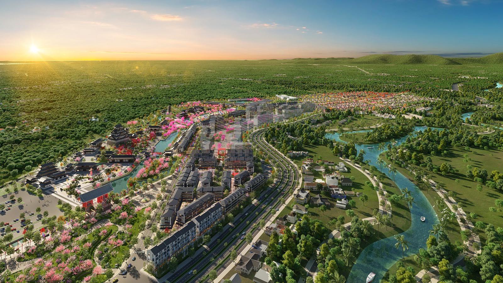 Phân khu thương mại Koto có vị trí đắc địa trong quần thể nghỉ dưỡng khoáng nóng Sun Beauty Onsen. Ảnh phối cảnh minh họa