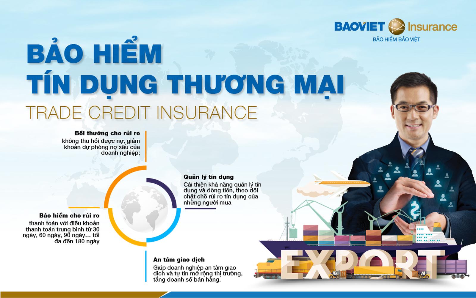 - Giúp doanh nghiệp cải thiện khả năng quản lý tín dụng và dòng tiền, theo dõi chặt chẽ rủi ro tín dụng của những người mua và cập nhật những xu hướng liên quan đến thanh toán ở các thị trường trên toàn thế giới; bảo hiểm tín dụng thương mại là một công cụ đáng giá hỗ trợ doanh nghiệp xuất khẩu trong quản lý rủi ro tín dụng, tăng ưu thế trong việc tiếp cận nguồn vốn tín dụng.