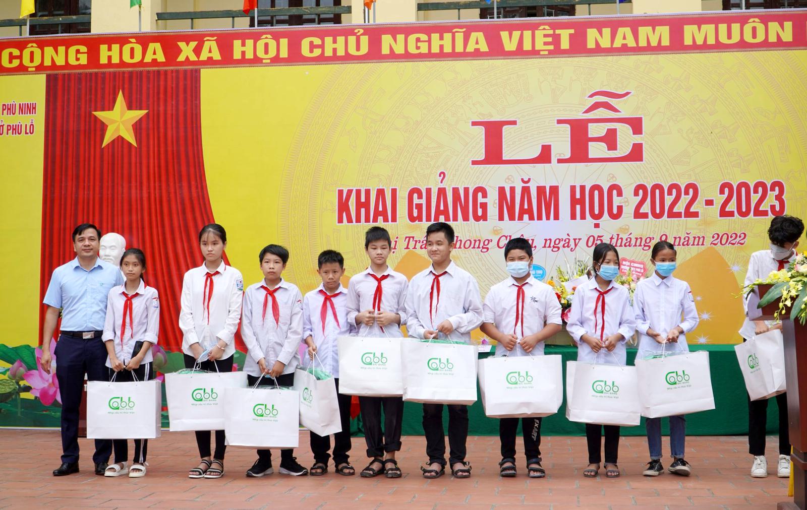 Đại diện VINAPACO trao quà cho các em học sinh Trường THCS Phù Lỗ (Phú Thọ)
