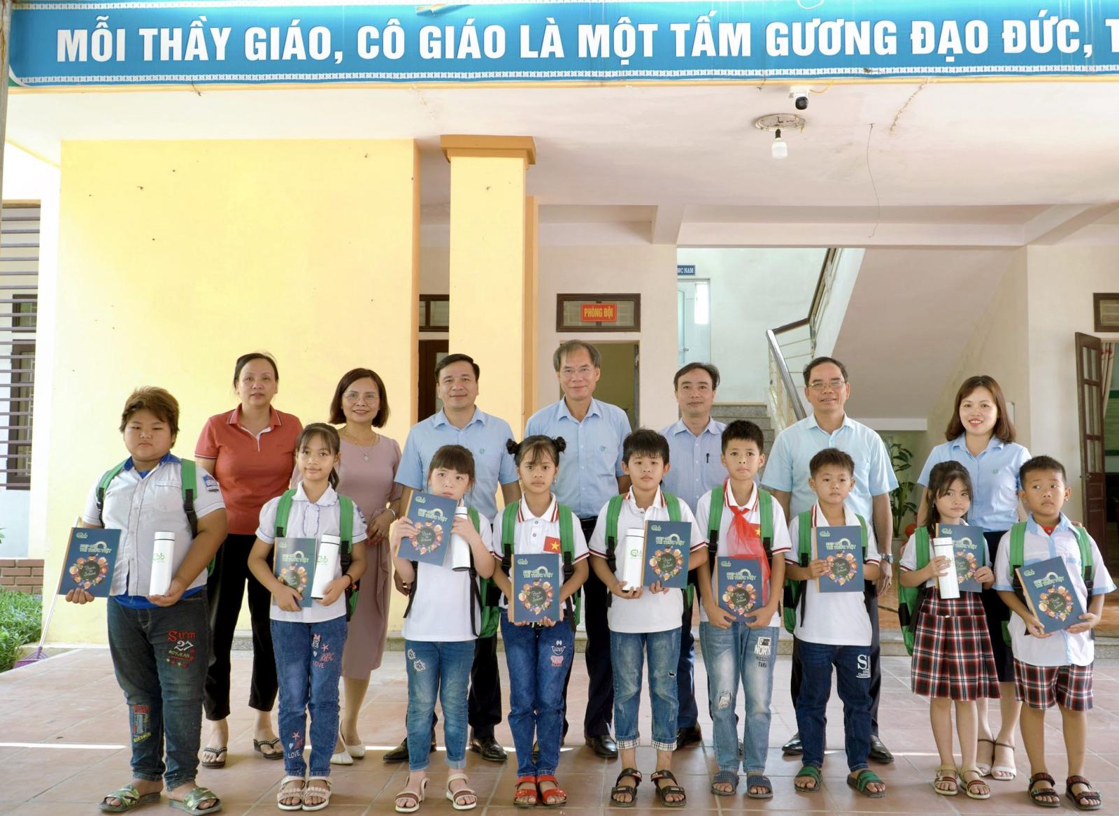 Đại diện lãnh đạo VINAPACO trao quà cho các thầy cô và học sinh Trường Tiểu học An Đạo (Phú Thọ). Ảnh: Đỗ Quyên