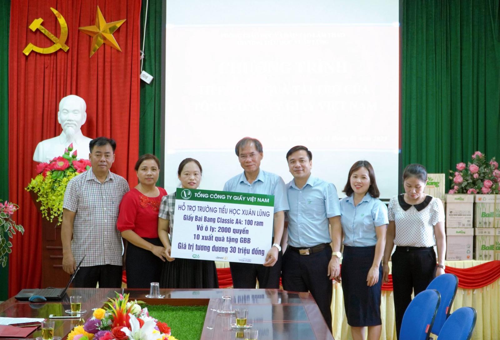 Đại diện lãnh đạo Tổng Công ty Giấy Việt Nam trao tặng Trường Tiểu học Xuân Lũng (Phú Thọ)