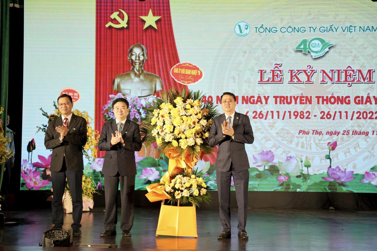 Đồng chí Vũ Trí Thắng – Ủy viên Ban Chấp hành Đảng bộ Khối, Trưởng Ban Dân vận Đảng ủy Khối Doanh nghiệp Trung ương tặng hoa chúc mừng Lễ kỷ niệm