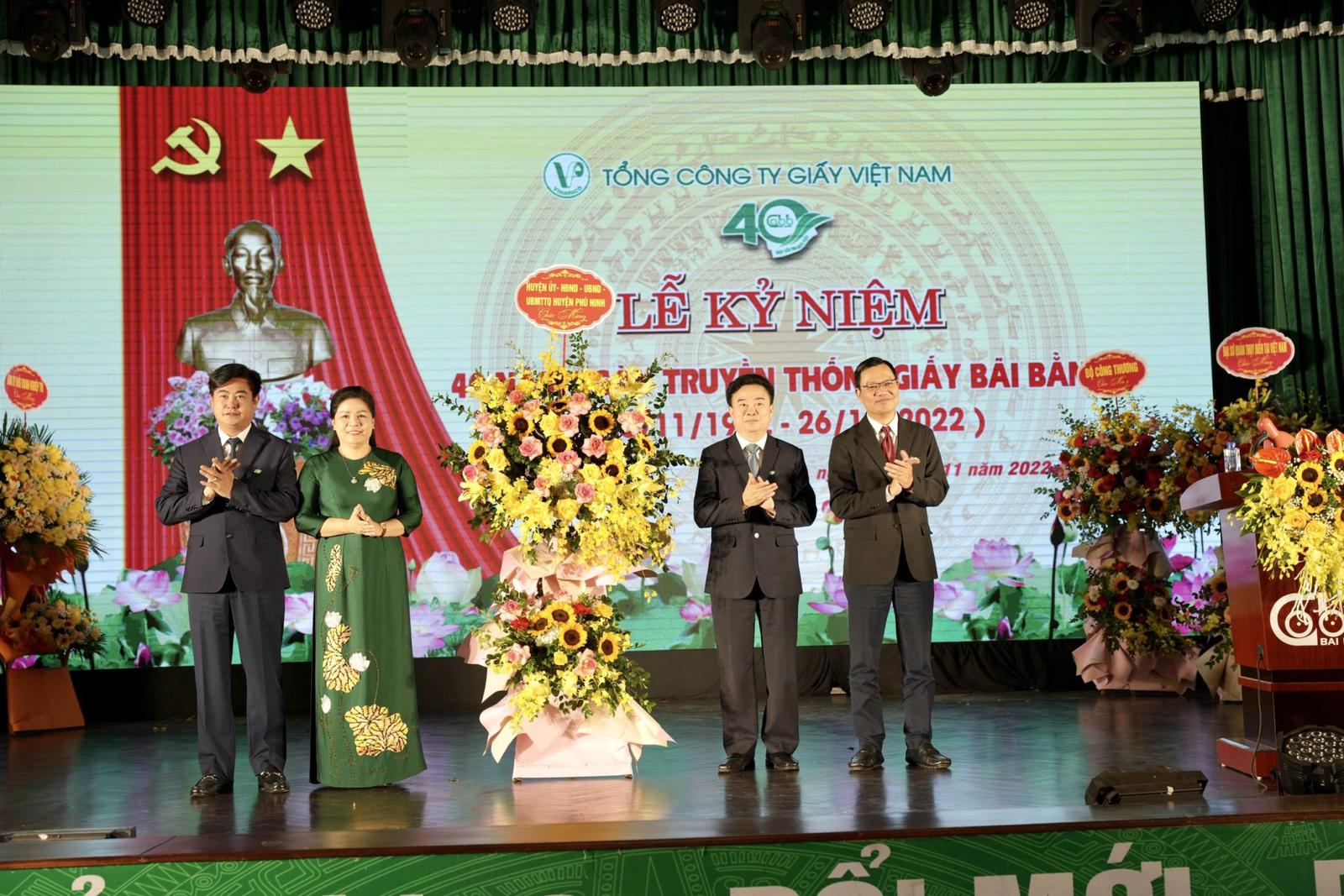 Đồng chí Nguyễn Thị Tố Uyên – Tỉnh ủy viên, Bí thư Huyện ủy, Chủ tịch Hội đồng nhân dân huyện Phù Ninh tặng hoa chúc mừng 40 năm Ngày truyền thống Giấy Bãi Bằng