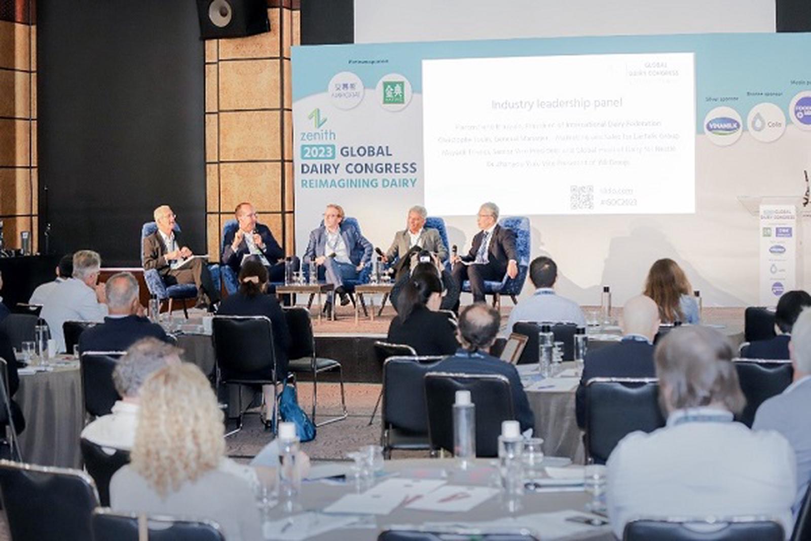Ông Richard Hall, Chủ tịch Hội nghị sữa toàn cầu (thứ 2 bên trái) trao đổi cùng các đại diện doanh nghiệp, tổ chức tại Hội nghị