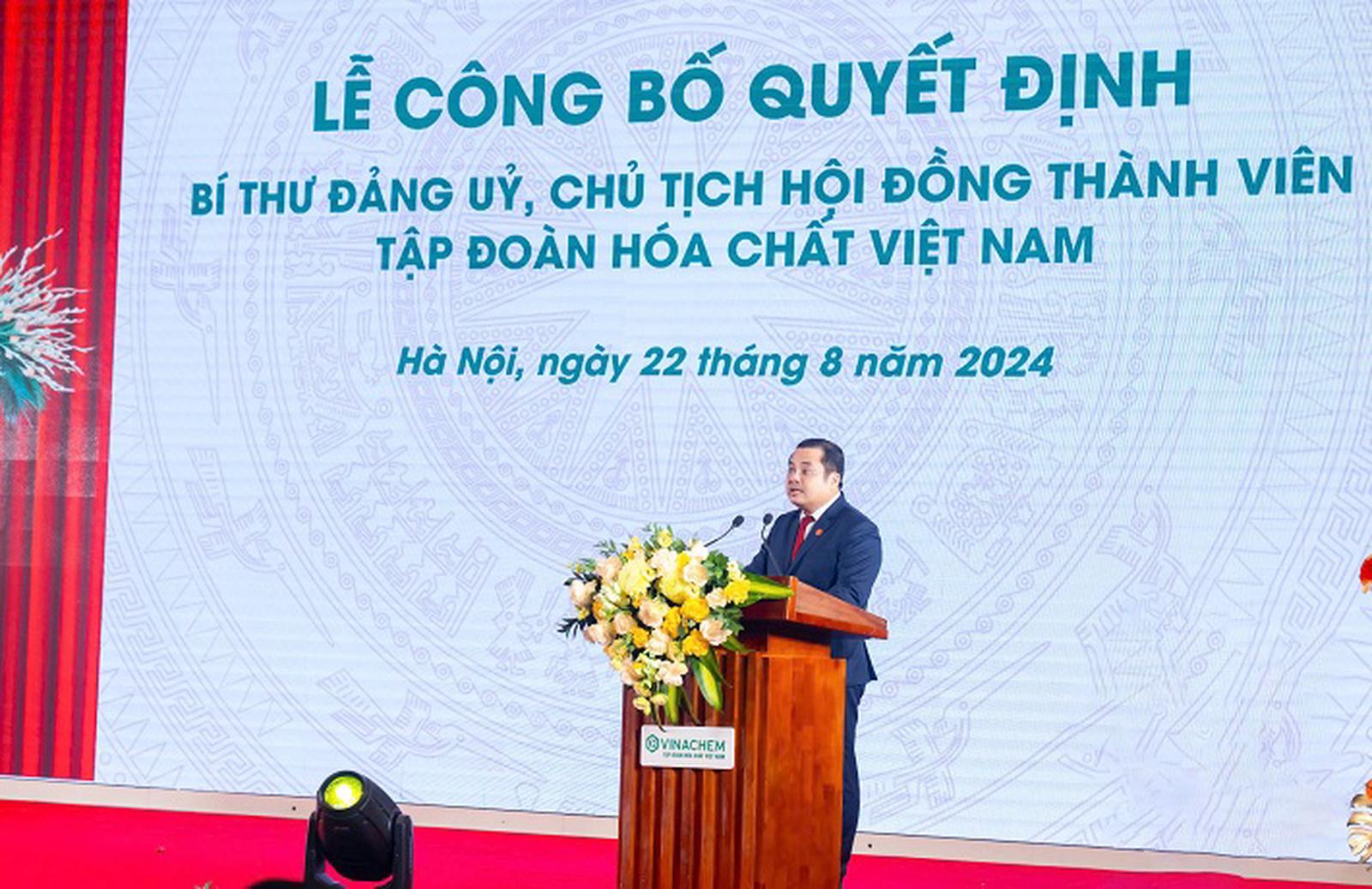 (Thanh tra) - Chiều 22/8, tại Hà Nội, trong khuôn khổ Lễ Kỷ niệm 55 năm ngày truyền thống ngành Hoá chất Việt Nam (19/8/1969 - 19/8/2024), Tập đoàn Hoá chất Việt Nam (Vinachem) đã tổ chức công bố và trao Quyết định Bí thư Đảng uỷ, Chủ tịch HĐTV Vinachem cho ông Phùng Quang Hiệp.