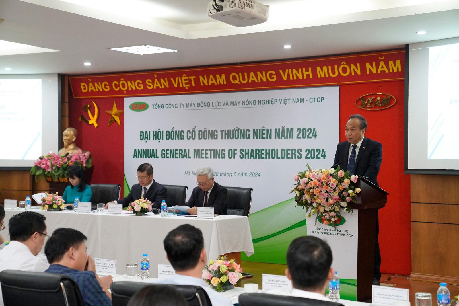 (Thanh tra) - Ngày 20/6, tại Hà Nội, Tổng công ty Máy động lực và Máy nông nghiệp Việt Nam -CTCP (VEAM) đã tổ chức thành công cuộc họp Đại hội đồng cổ đông thường niên năm 2024. Đại hội đã thông qua mục tiêu tổng doanh thu năm 2024 đạt 6.413,8 tỷ đồng và lợi nhuận sau thuế dự kiến đạt 5.488,9 tỷ đồng. Đồng thời, Đại hội cũng tiến hành bầu bổ sung thành viên HĐQT nhiệm kỳ 2022-2027.