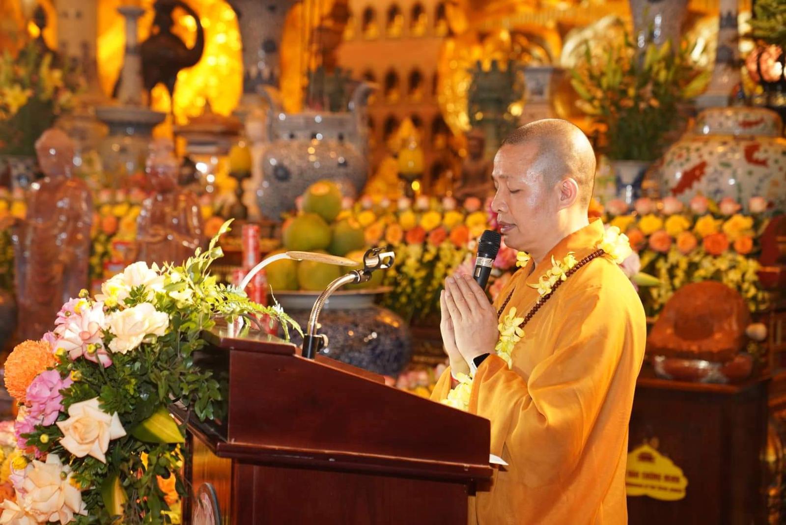 Thượng toạ Thích Minh Quang, Phó Trụ trì chùa Bái Đính làm lễ cầu nguyện, ảnh: TV
