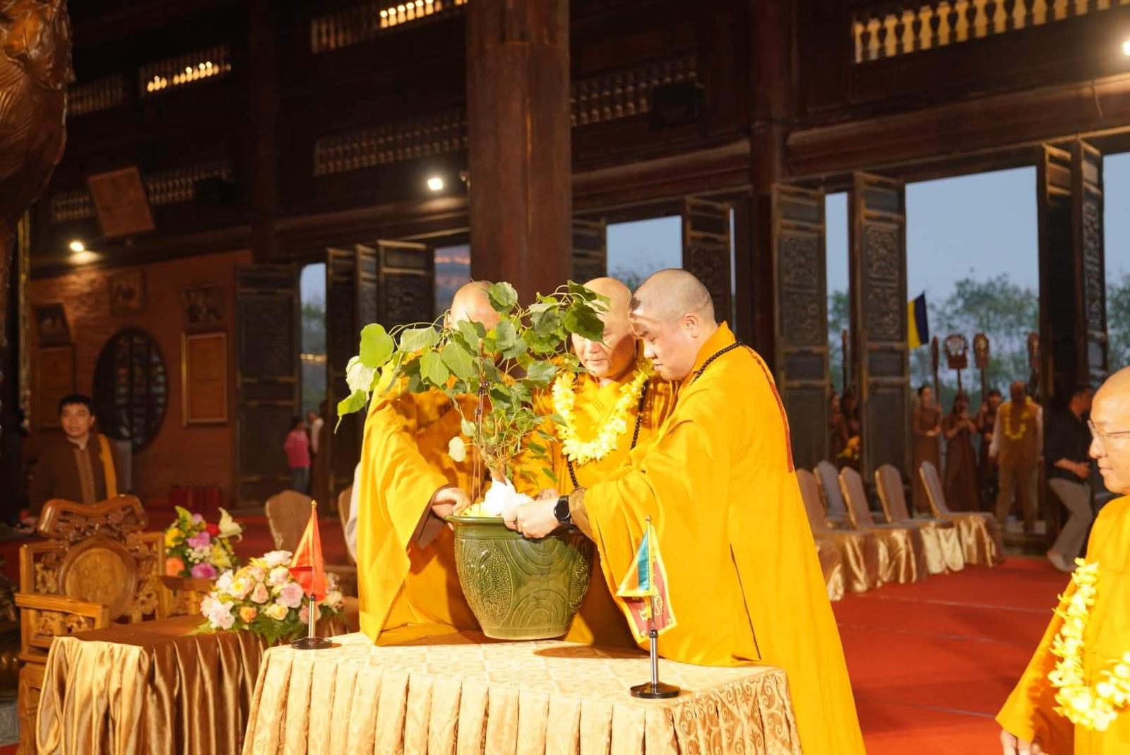 Thượng toạ Thích Minh Quang, Phó Trụ trì chùa Bái Đính cho biết, giờ phút linh thiêng này, tại chùa Bái Đính tổ chức buổi lễ trồng cây bồ đề vĩ đại cát tường được chiết từ cây bồ đề có tuổi thọ cao nhất thế giới hiện nay (khoảng 2.300 năm tuổi) và được coi là báu vật của quốc đảo Sri Lanka. Năm 247 (trước công nguyên), Vua A Dục đã cho chiết một nhánh phía Nam của cây bồ đề thiêng ở Bodh Gaya - Ấn Độ (nơi Đức Phật thành đạo) và phái Công chúa Sangha - Mitta đem sang tặng cho quốc đảo Sri Lanka. Dịp này, Giáo hội tổ chức lễ cầu nguyện quốc thái dân an, Phật pháp trường tồn, cầu nguyện cho nhân dân 2 nước bình an, cát tường.