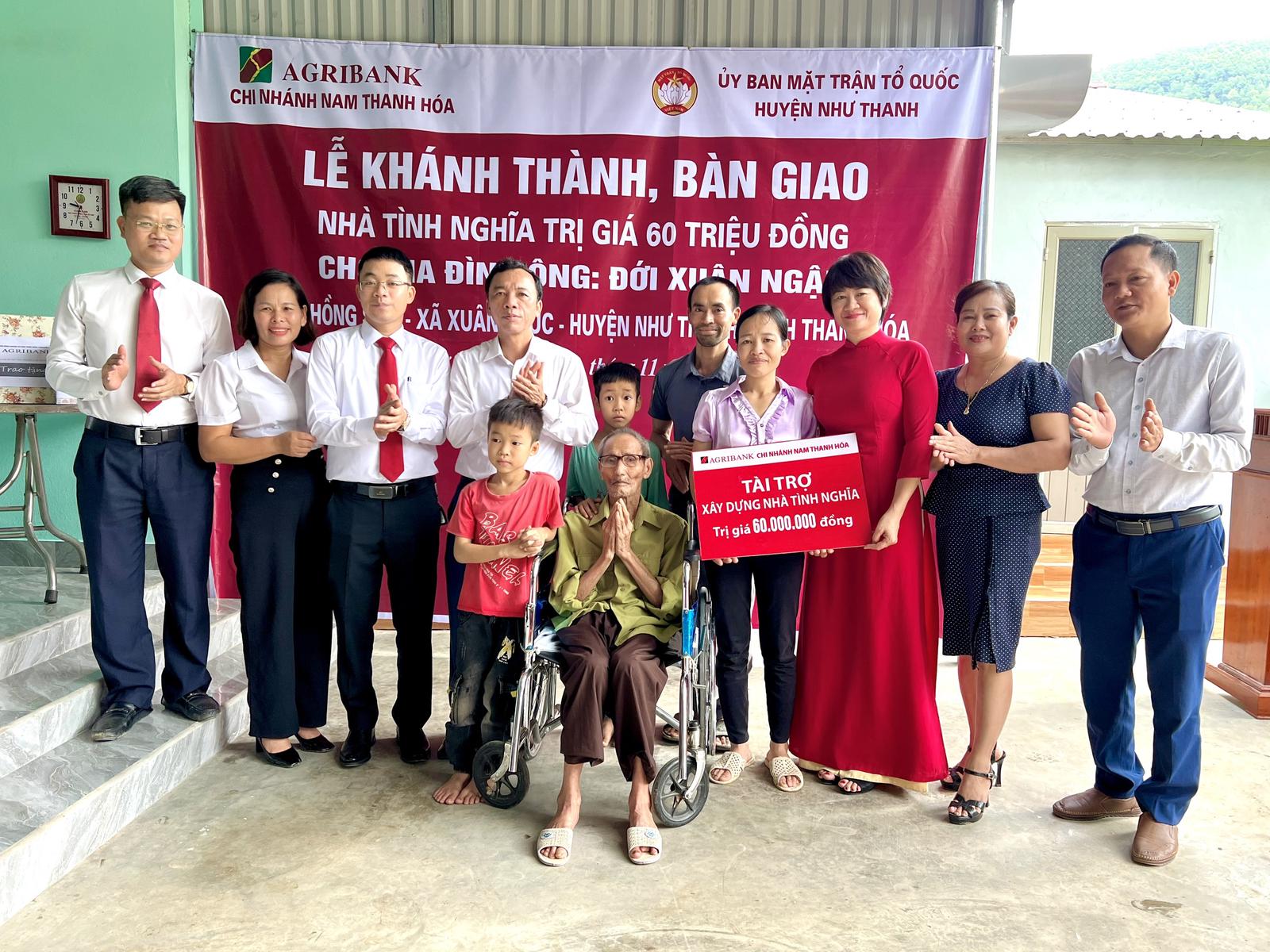 Agribank Nam Thanh Hóa trao tiền tài trợ nhà tình nghĩa ở huyện Như Thanh. Ảnh: VT