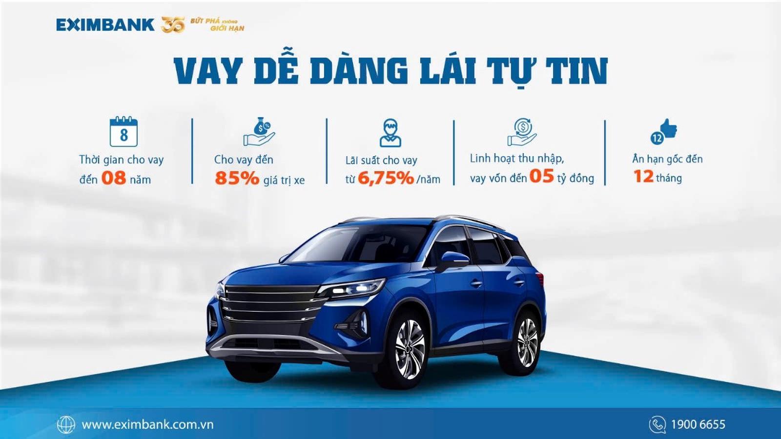Trong bối cảnh kinh tế hiện đại, việc sở hữu xe ô tô thông qua hình thức vay vốn không chỉ là xu hướng mà còn là giải pháp tài chính thông minh. Với 35 năm kinh nghiệm và cam kết đồng hành cùng khách hàng, Eximbank tự hào mang đến giải pháp vay mua xe tối ưu, giúp nhiều gia đình Việt sớm hiện thực hóa ước mơ sở hữu xe của mình.
