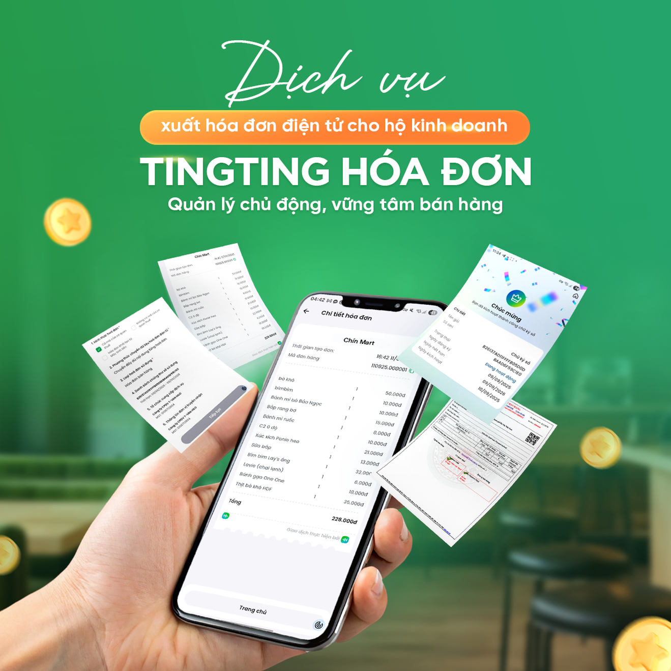 Đồng hành cùng hộ kinh doanh trong hành trình số hoá và tuân thủ quy định Nghị định 70/2025/NĐ-CP về hóa đơn, chứng từ, Giải pháp TingTing chính thức tích hợp thêm tính năng xuất hóa đơn điện tử ngay trên một ứng dụng cài đặt trên điện thoại