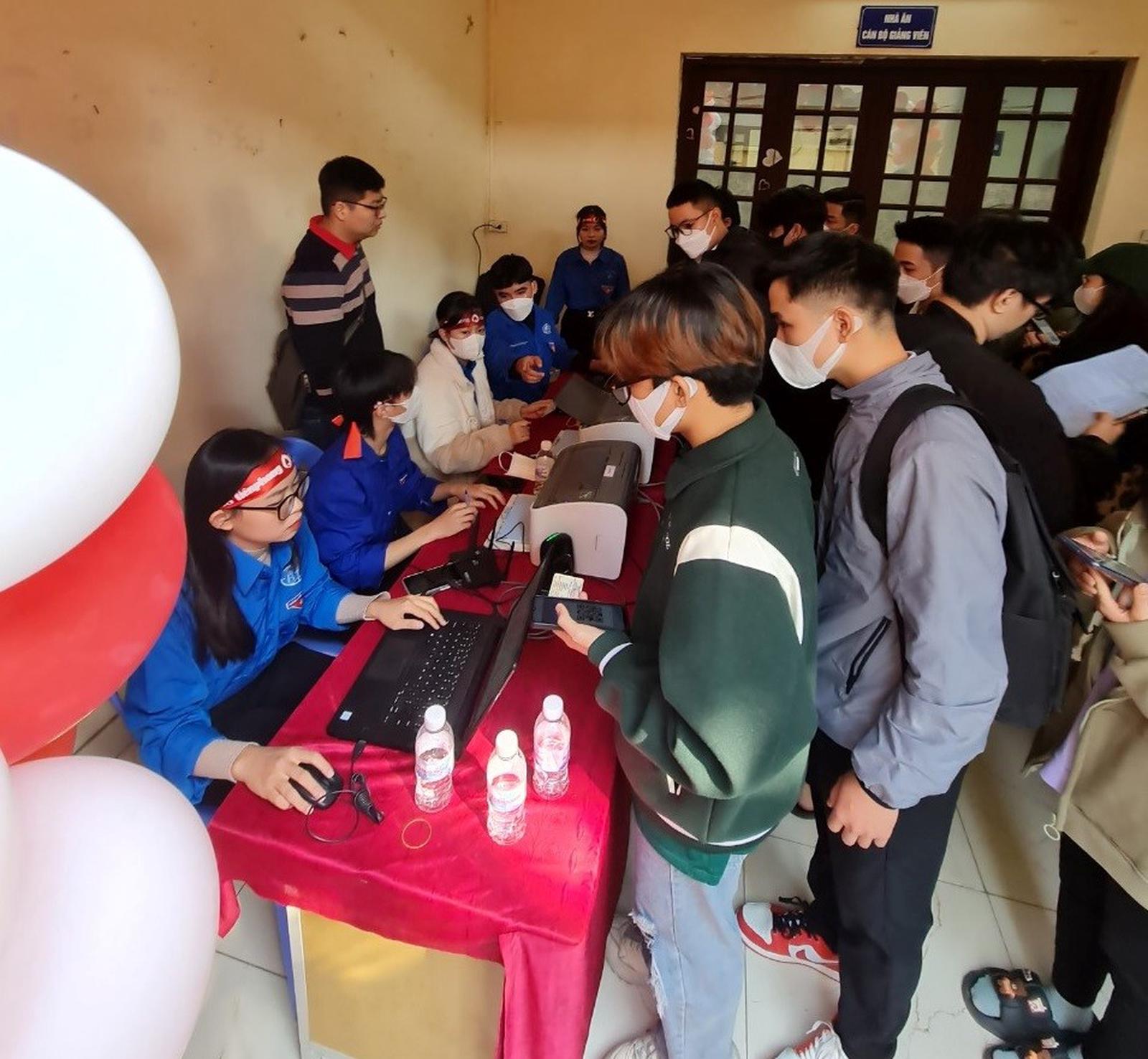Các bạn sinh viên thực hiện các bước đăng ký để tham gia hiến máu