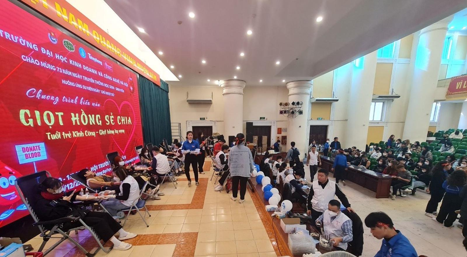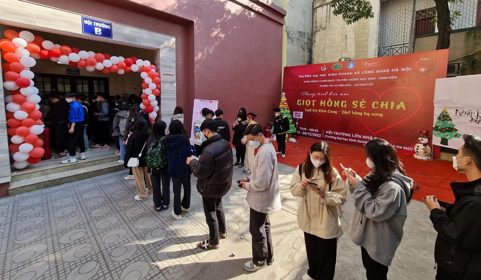 (Thanh tra) - Hưởng ứng ngày hội hiến máu nhân đạo, trong 2 ngày 19 và 20/12/2022, Đoàn Thanh niên - Hội Sinh viên của Trường Đại học Kinh doanh và Công nghệ Hà Nội (HUBT) kết hợp cùng với Viện Huyết học và Truyền máu Trung ương tổ chức chương trình hiến máu “HUBT – Giọt hồng sẻ chia”.