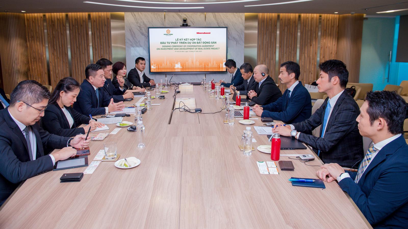 Toàn cảnh lễ ký kết hợp tác đầu tư phát triển dự án bất động sản và buổi làm việc chuyên sâu về dự án giữa Tập đoàn Hưng Thịnh và Tập đoàn Marubeni. Ảnh: HT