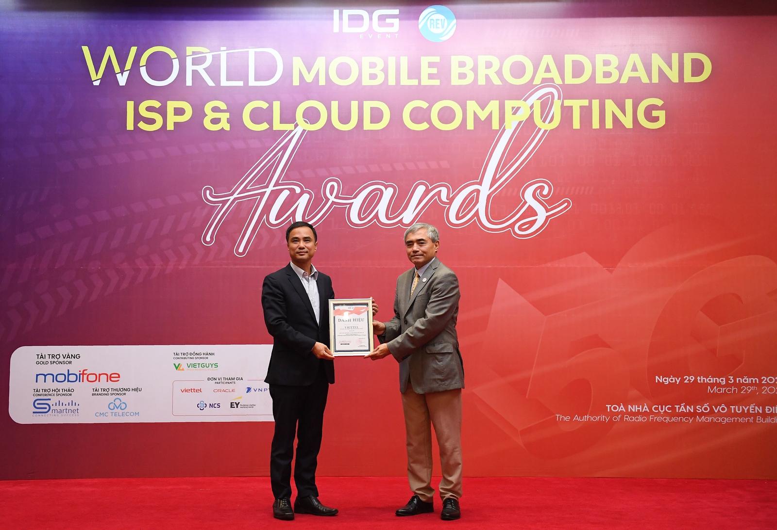 Ông Vũ Khánh Duy, Giám đốc Trung tâm Cố định Băng rộng, Viettel Telecom nhận giải thưởng nhà cung cấp dịch vụ viễn thông tiêu biểu về chất lượng chăm sóc khách hàng băng thông rộng cố định