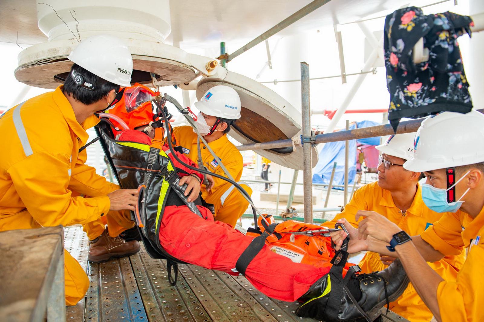 Diễn tập “Ứng cứu tình huống khẩn cấp khi thực hiện BDSC trong bồn LPG V-5101 tại Nhà máy GPP Cà Mau”