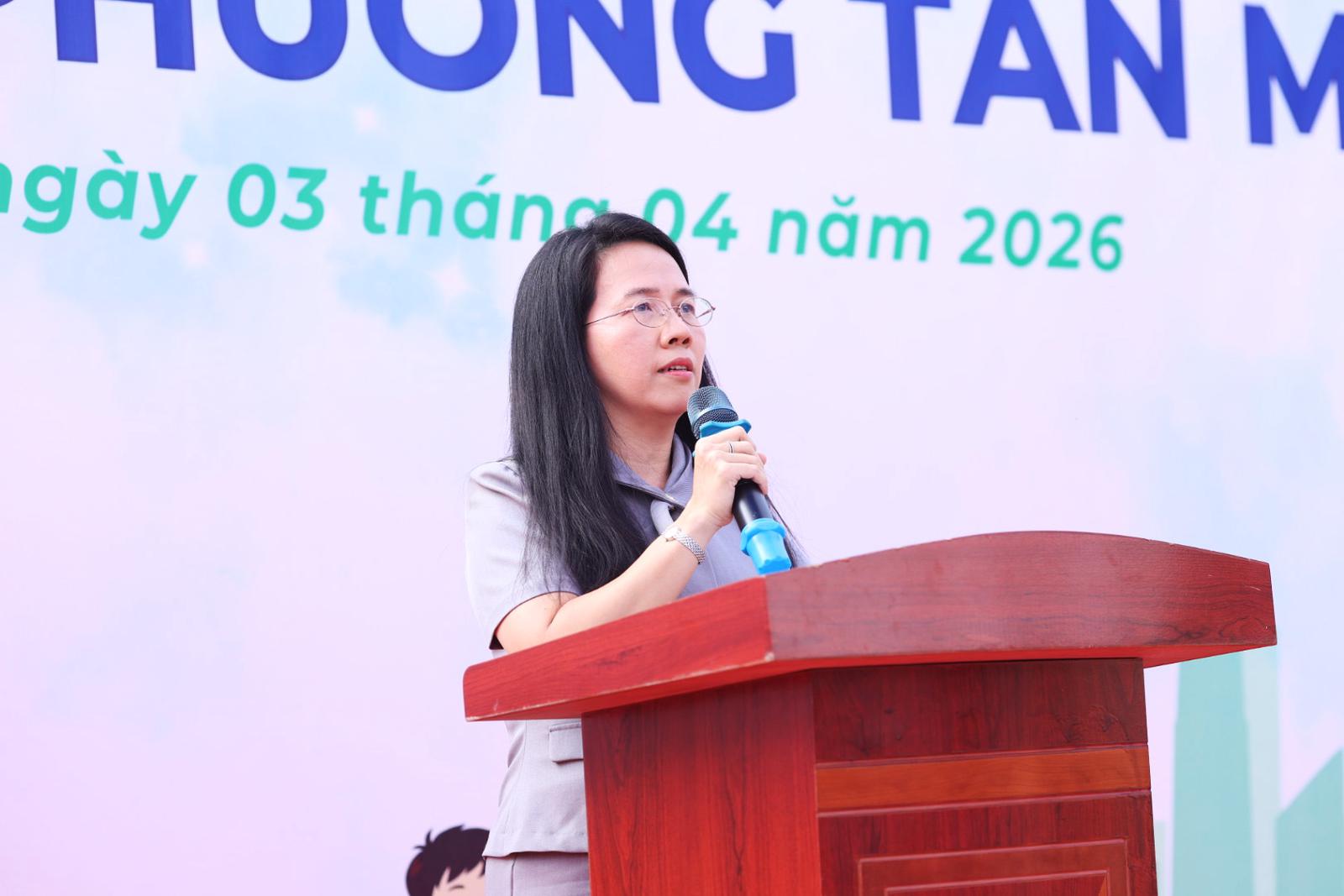 Bà Nguyễn Thị Bé Ngoan - Chủ tịch Ủy ban nhân dân phường Tân Mỹ phát biểu tại sự kiện