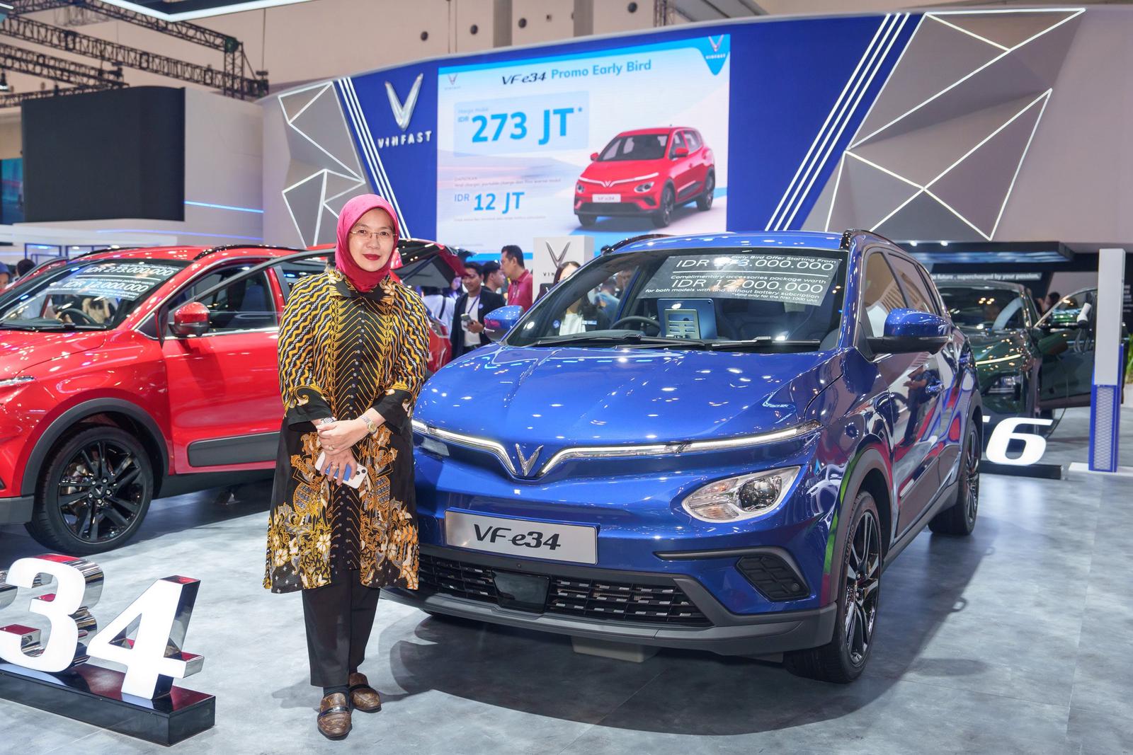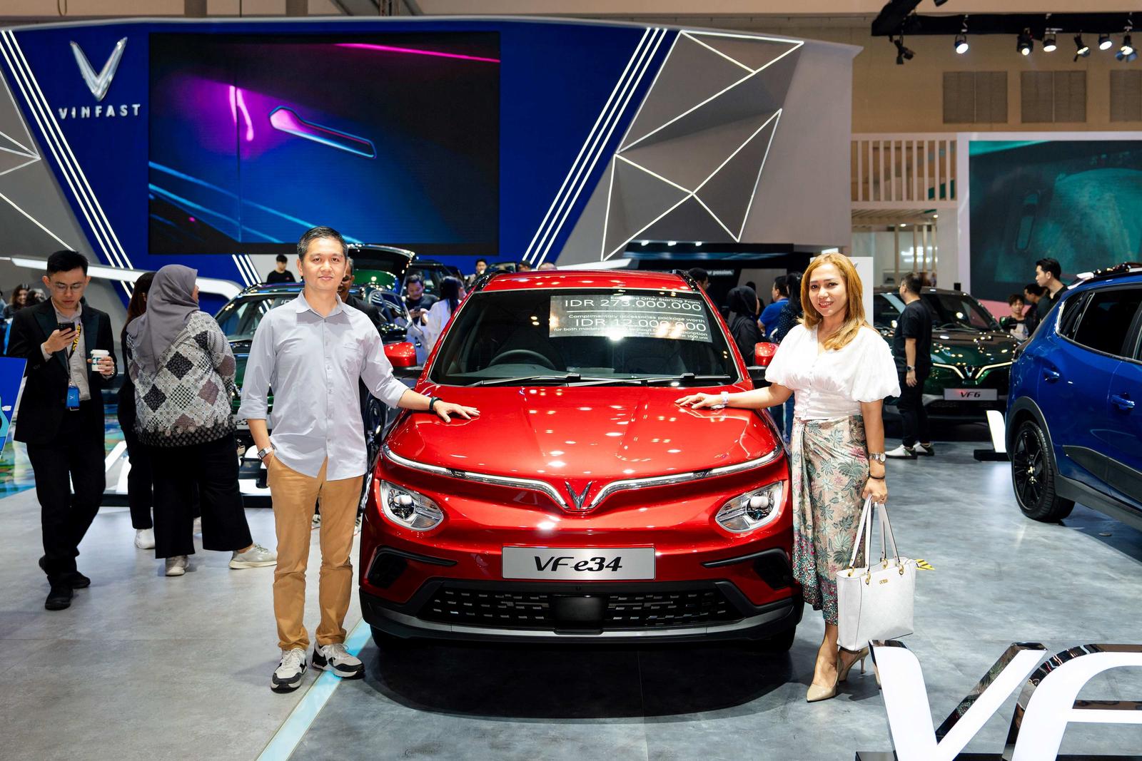 Tại thị trường Indonesia, mẫu VF e34 được bán với giá niêm yết không kèm pin là 315.000.000 IDR, chi phí thuê pin từ 1.500.000 IDR/tháng, cùng chính sách bảo hành lên tới 10 năm. Tại GIIAS 2024, khách tham quan có thể lái thử mẫu xe điện này và VF 5 - mẫu A-SUV đang nhận được sự quan tâm lớn của cộng đồng người tiêu dùng Indonesia. VinFast cũng mang tới trưng bày tại triển lãm dải sản phẩm SUV điện đầy đủ từ VF 5, VF e34, VF 6, VF 7, VF 8 đến VF 9.