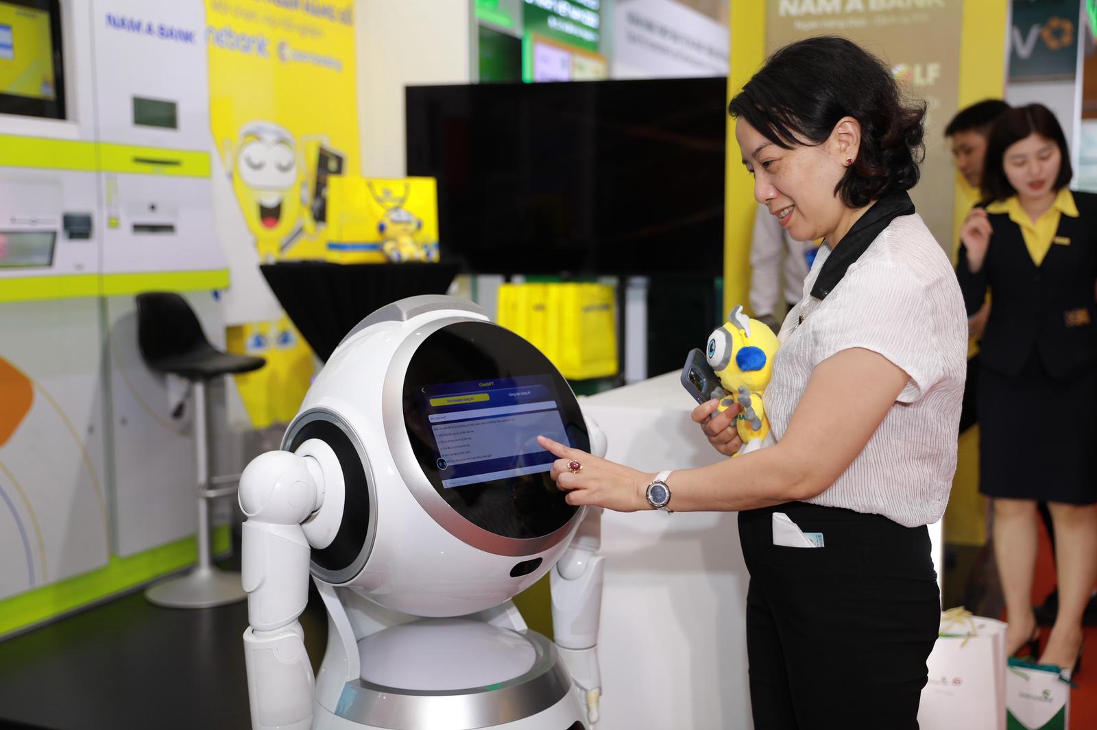 Tại sự kiện này, Nam A Bank cũng thu hút khách hàng tham quan và trải nghiệm Robot OPBA. Robot OPBA được cải tiến những chức năng thu thập, lưu trữ thông tin khách hàng, tích hợp đông cụ Chat GPT… như một nhân viên ngân hàng thực thụ tư vấn, đưa ra giải pháp và chăm sóc khách hàng một cách thân thiện, hiệu quả. Robot OPBA được đánh giá là một trong những thế mạnh giúp gia tăng, chất lượng dịch vụ, nâng cao trải nghiệm cho khách hàng của Nam A Bank trên thị trường tài chính.