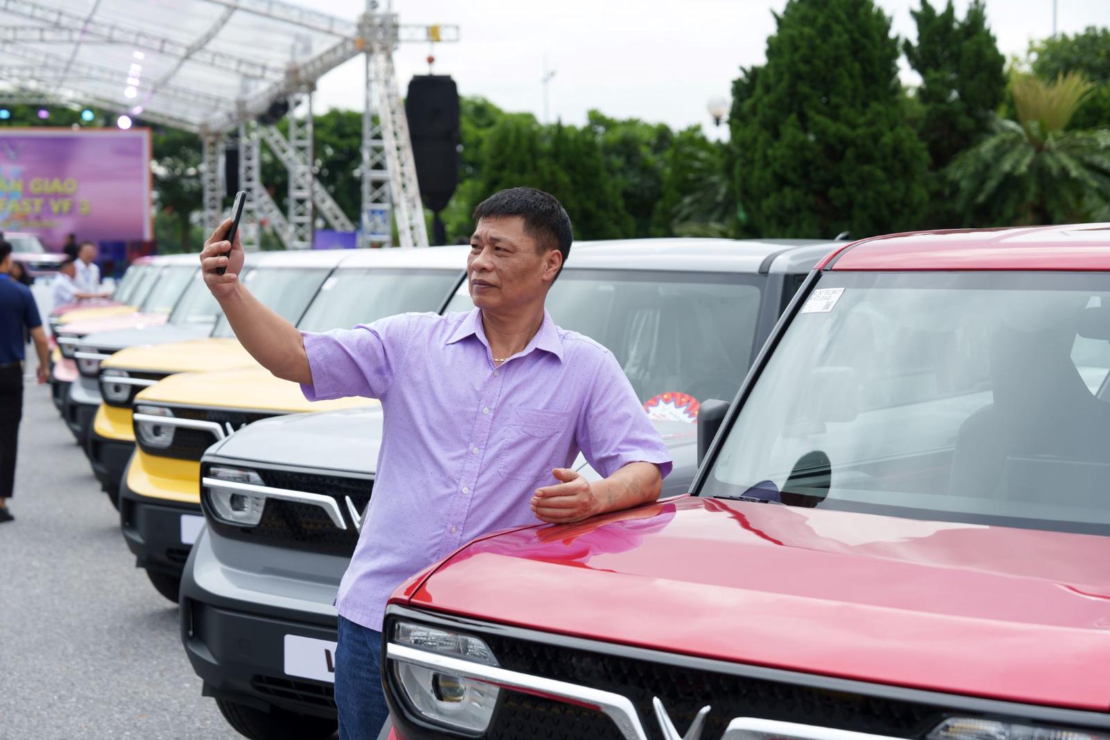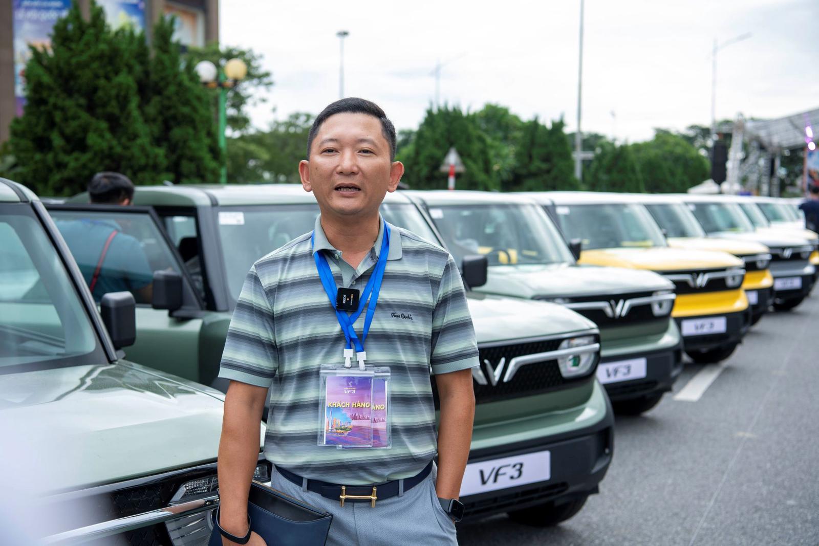Anh Nguyễn Tuấn Kha (TP.HCM) vui mừng khi là một trong những khách hàng đầu tiên nhận bàn giao xe. “Ngày 12/5, mình biết thông tin VF 3 sẽ mở đặt cọc lúc 6h sáng ngày 13/5. Hôm sau, mình hẹn giờ dậy lúc 5h30, hoàn tất đặt cọc và thanh toán lúc 5h57 phút. Số thứ tự mua xe là 84”, anh Tuấn Kha chia sẻ.